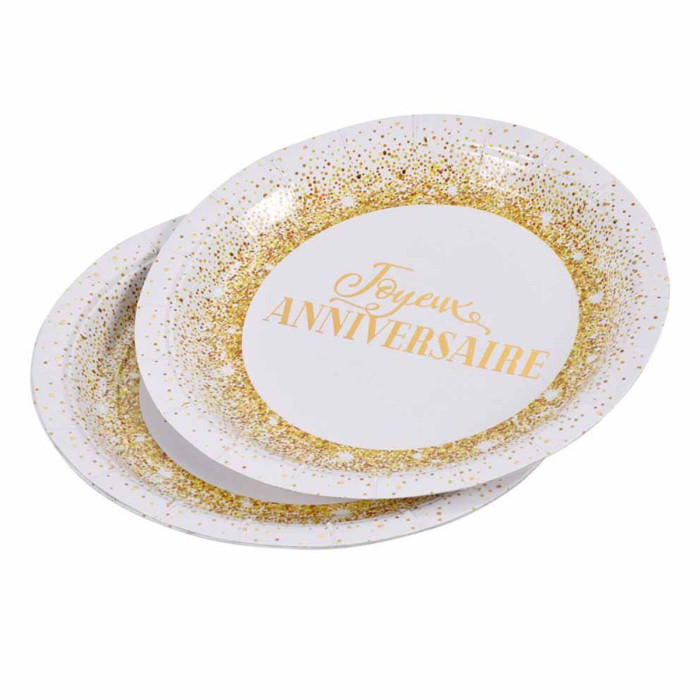 | Libellé | Lot de 6 Assiettes en Carton "Anniversaire Gold II" 18cm Blanc |