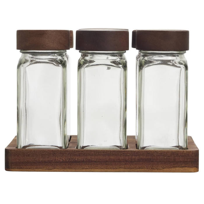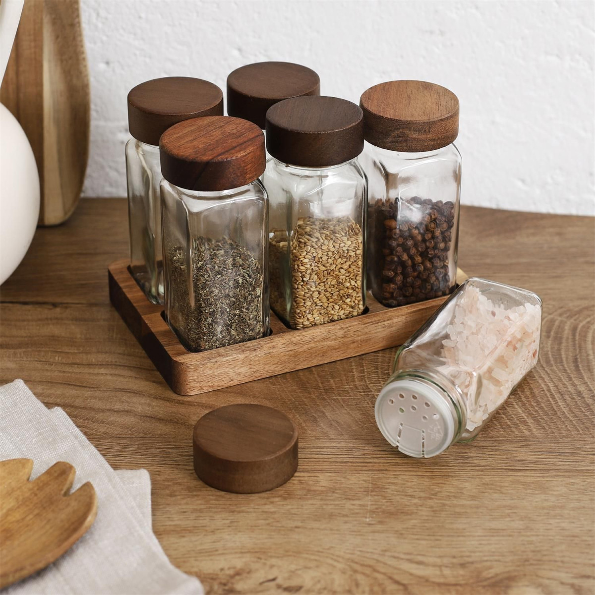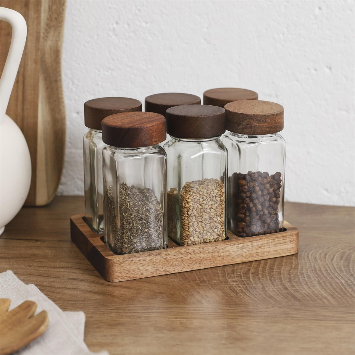 Lot de 6 Bocaux à Épices "Acacia" 17cm Transparent