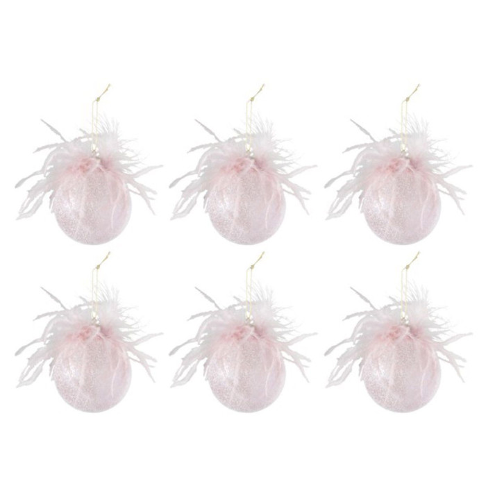 Lot de 6 Boules de Noël "Plumes Déco" 8cm Rose