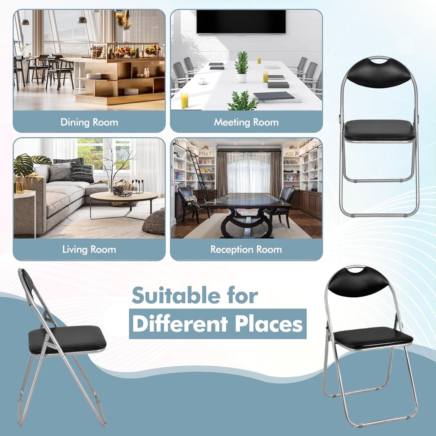 - Fonction polyvalente : Que ce soit pour votre salle à manger, votre bureau ou votre salle de réunion, nos chaises pliantes confortables offrent une solution d'assise pratique et élégante pour différentes occasions.