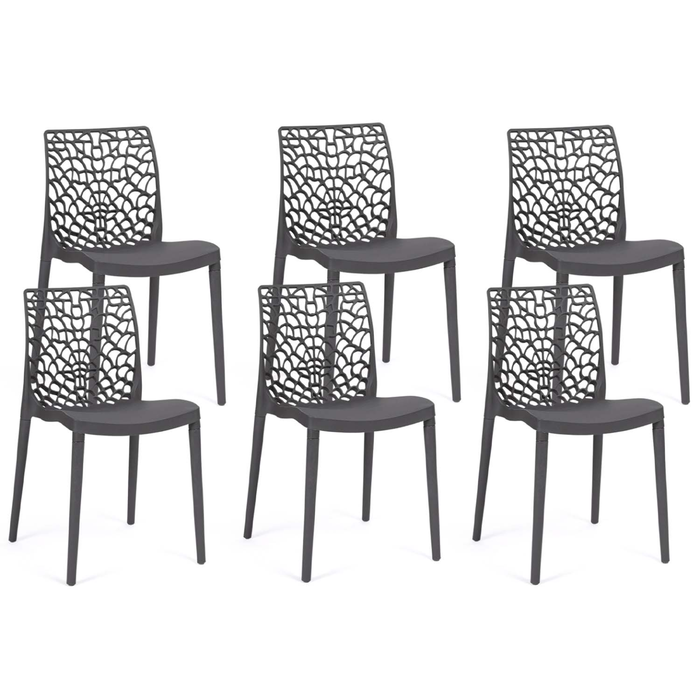 | Libellé | Lot de 6 chaises design ALYSSA en polypropylène nid d'abeille gris anthracite pour intérieur et extérieur |