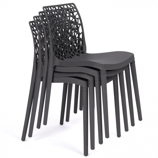 Alliez design graphique original et confort pour décorer votre terrasse avec style grâce aux chaises de jardin ALYSSA !Le coloris gris anthracite intemporel à la finition mate, les pieds fins ton sur ton et le dossier ajouré façon nid d'abeille confèrent à ces chaises d'extérieur des lignes légères ainsi qu'un style graphique très tendance !Que vous choisissiez de les disposer sur votre terrasse, dans votre salle à manger, votre cuisine, un bureau ou même une salle d'attente ou salle de restaurant, ces chaises originales trouveront idéalement leur place grâce à leur design élégant et leur coloris passe-partout ! Profitez-en pour ajouter un look moderne et épuré autour de votre table de jardin dès l'arrivée des beaux jours ! Pratiques et fonctionnelles, les chaises sont faciles à nettoyer et empilables, gagnez de la place facilement dès que vous aurez besoin de les mettre à l'abri pour l'hiver. Conçus en polypropylène, le dossier souple et ergonomique ainsi que l'assise large de ces chaises vous garantiront un excellent confort. Leurs pieds solides et stables sont également en polypropylène et soulignent leur design élégant. Pratiques, ils sont dotés de patins en plastique afin de ne pas rayer le sol !Que ça soit pour votre terrasse ou votre intérieur, profitez dès à présent du design tendance et du petit prix de ce lot de 6 chaises en plastique ALYSSA gris anthracite !Dimensions des chaises ALYSSA nid d'abeille gris anthraciteDimensions globales : Longueur 45,5 cm x largeur 52,5 cm x Hauteur 81,5 cmDimensions de l'assise : L. 42 x l. 42 x H. 45 cmHauteur du dossier : 39 cmMatériaux : polypropylènePieds munis de patins en plastiqueColoris : gris anthraciteFacilement lavablesVendues en lot de 6 chaisesÀ monter soi-mêmeRetrouvez l'ensemble de nos chaises de jardin sur notre boutique en ligne !