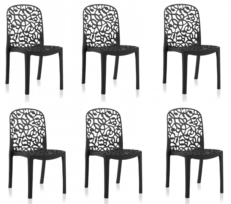 Descriptif:Lot de 6 chaises jardin Flora - AnthraciteFabriqué en Espagne.Structure :Polypropylène.Dimensions:47 x 50 x 87 cm.Poids:17.5 kg.Couleur:Anthracite.Colisage:1 colis : - 1,15 x 0,8 x 0,5 m, 17,5 kg.