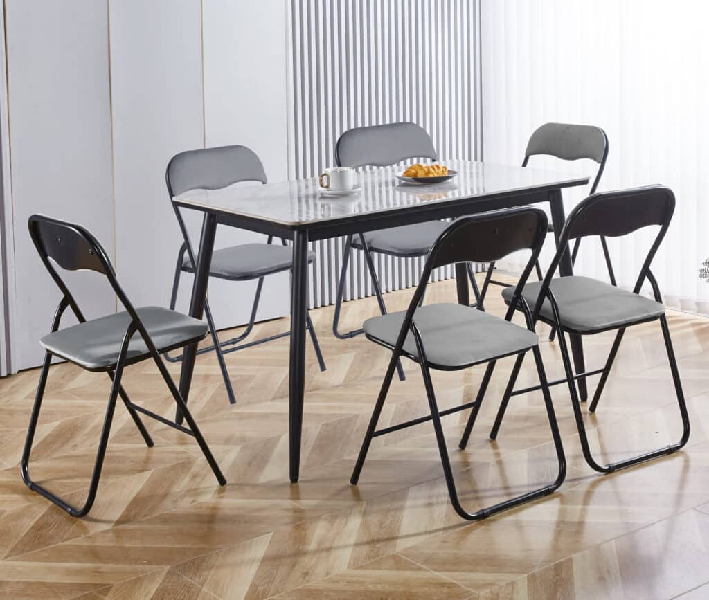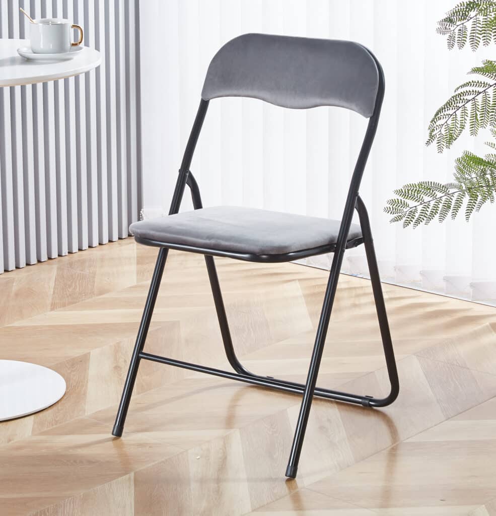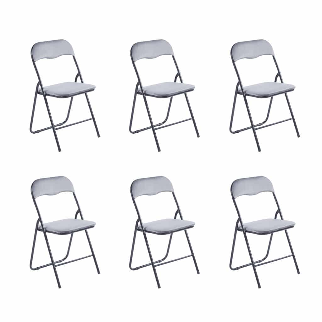 Lot de 6 chaises pliantes confortables en velours et métal - Gris