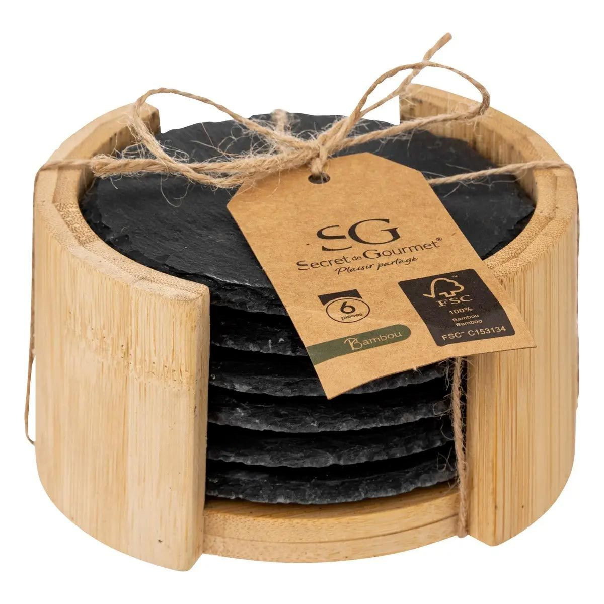 Lot de 6 Dessous de Verre "Ardoise" 10cm Noir