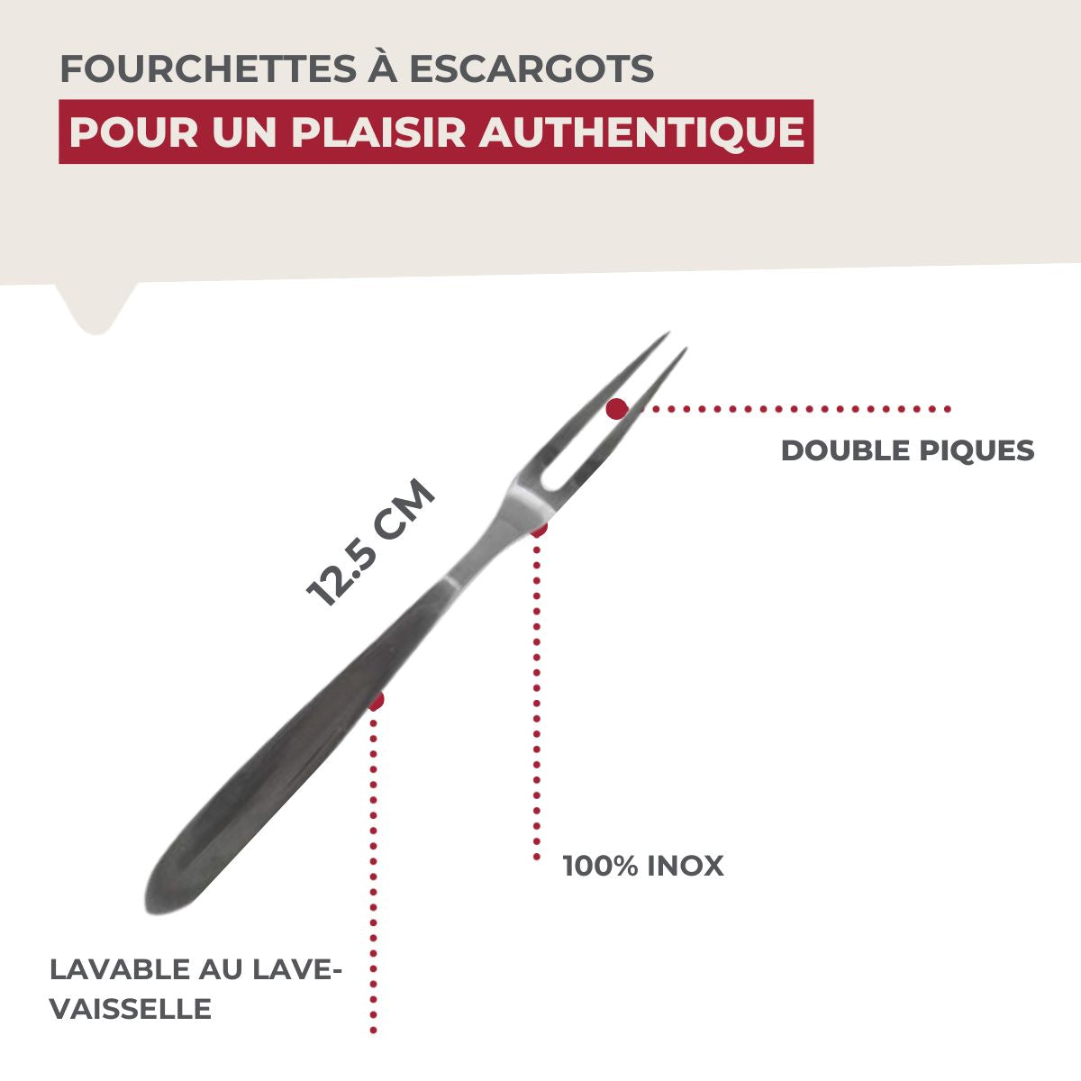 | Plus produit | LE PETIT + : Ces fourchettes sont indispensables pour manger vos escargots facilement ! |