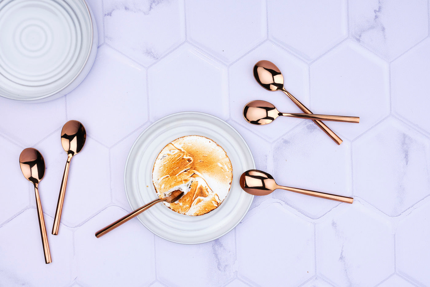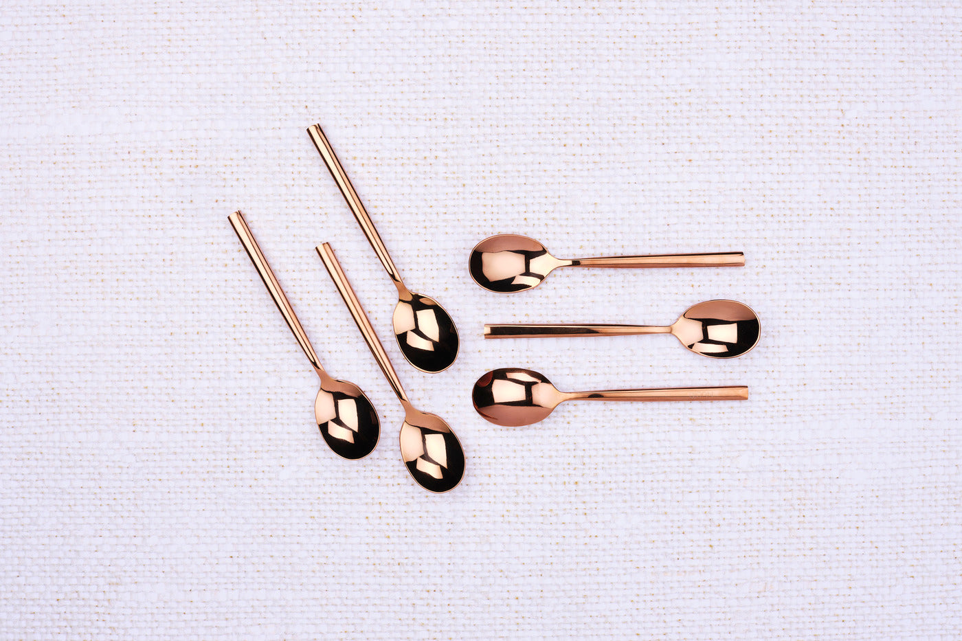 Fabriqué en acier inoxydable pour résister à une utilisation quotidienne, ces couverts sont durables et d'un entretien facile au lave-vaisselle. Dans sa version de couleur cuivrée avec une finition brillante, ce modèle à l'effet miroir chic et éclatant illuminera votre table et étonnera vos convives.
