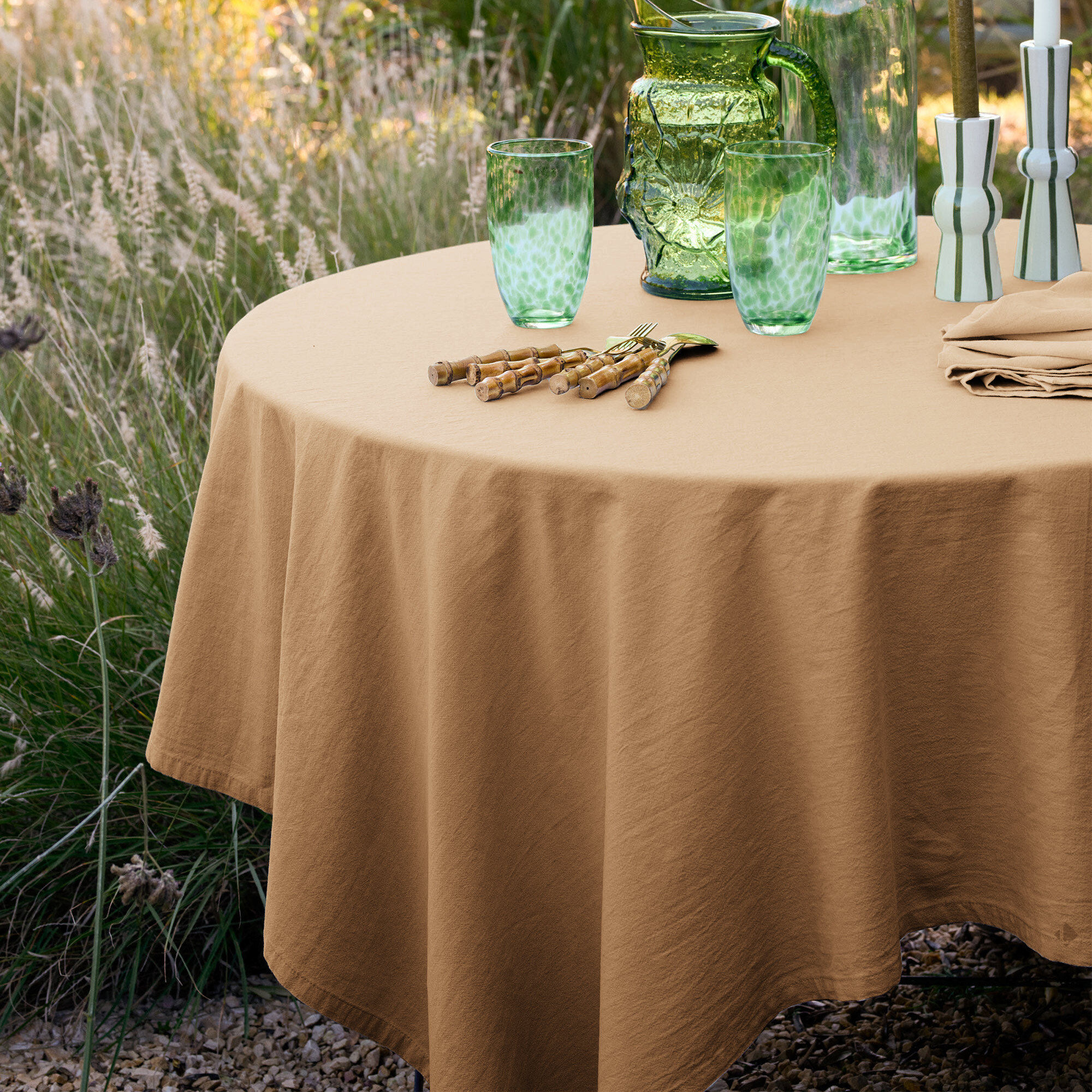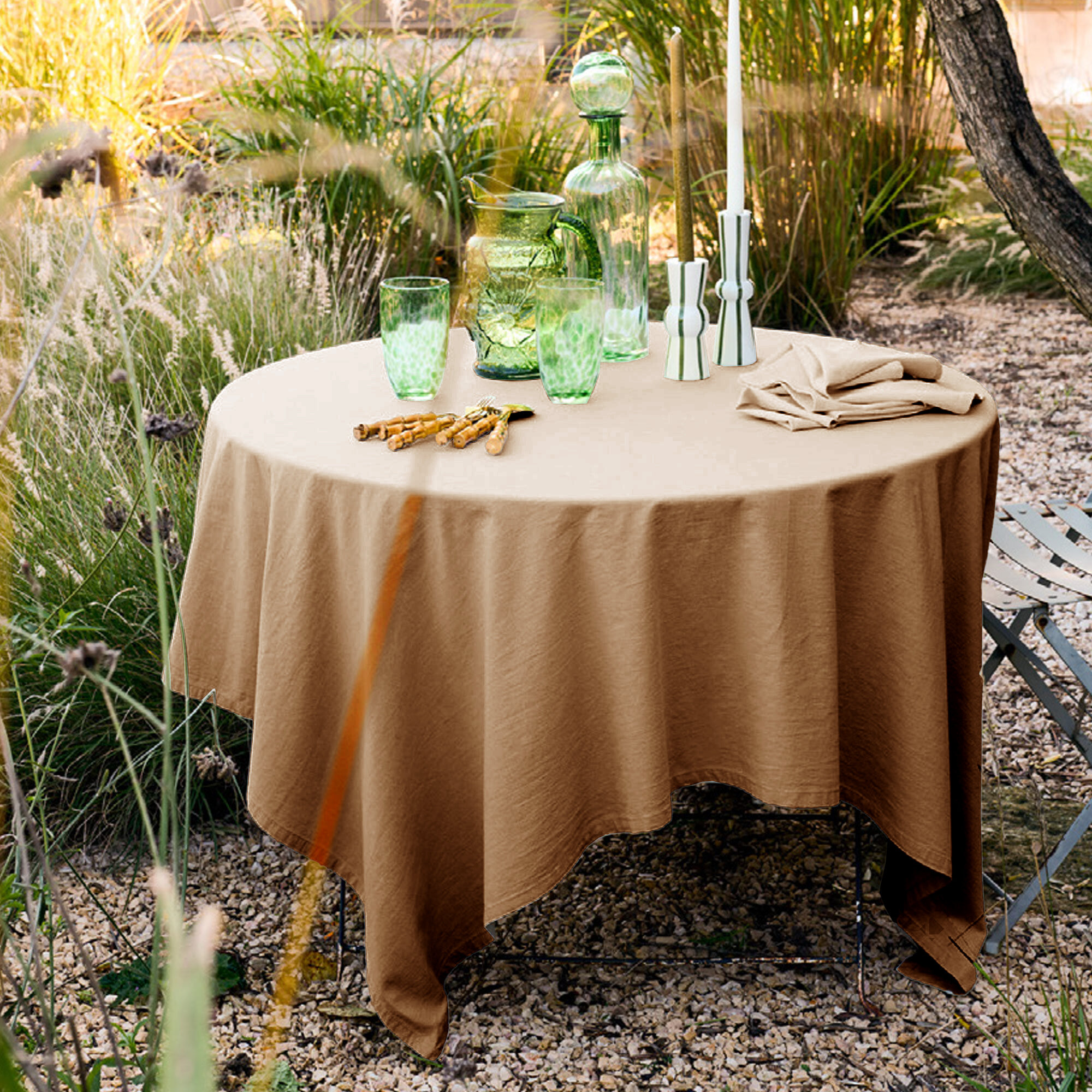 - Retrouvez les nappes et les tabliers de la même collection.