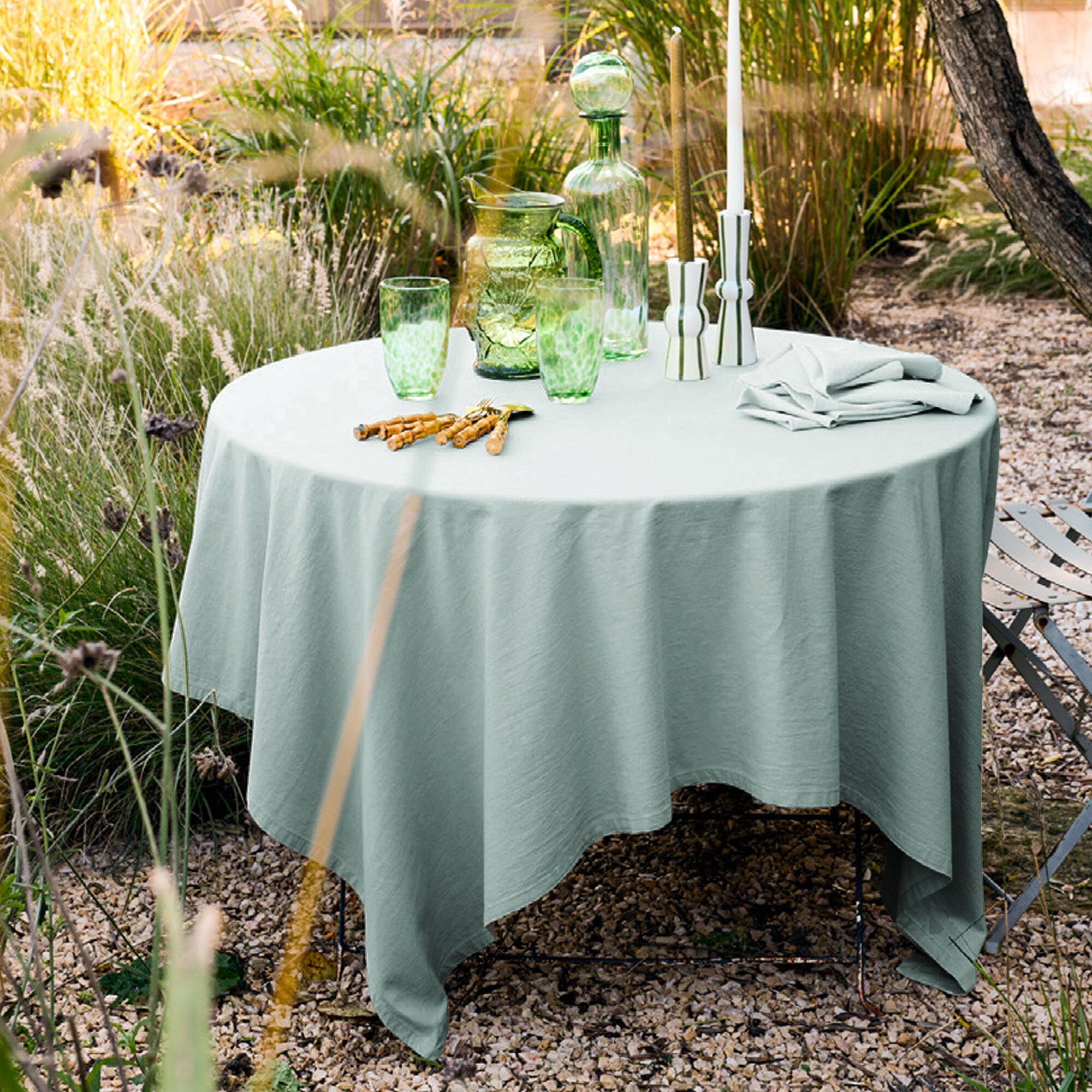 - Retrouvez les nappes et les tabliers de la même collection.