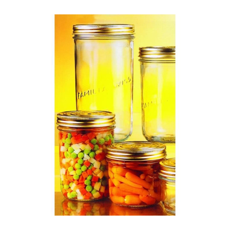 Les terrines Le Parfait Familia Wiss sont dotées d’une capsule et d’un couvercle qui se visse. Un autre mécanisme de fermeture, mais une conservation des aliments tout aussi parfaite ! Sa forme droite est très pratique pour démouler facilement toutes les préparations. Pour déguster vos préparations, il vous suffira simplement de percer la capsule. Bon à savoir : après le traitement thermique, retirez les couvercles à vis, ils ne sont pas utiles à la bonne conservation de vos terrines. Caractéristiques : - Les capsules et bouchons sont fournis dans le pack. - Terrine "familia wiss" avec fermeture à capsule à vis, - Diamètre : 100 mm - Contenance : 350 gr - Pack de 6.