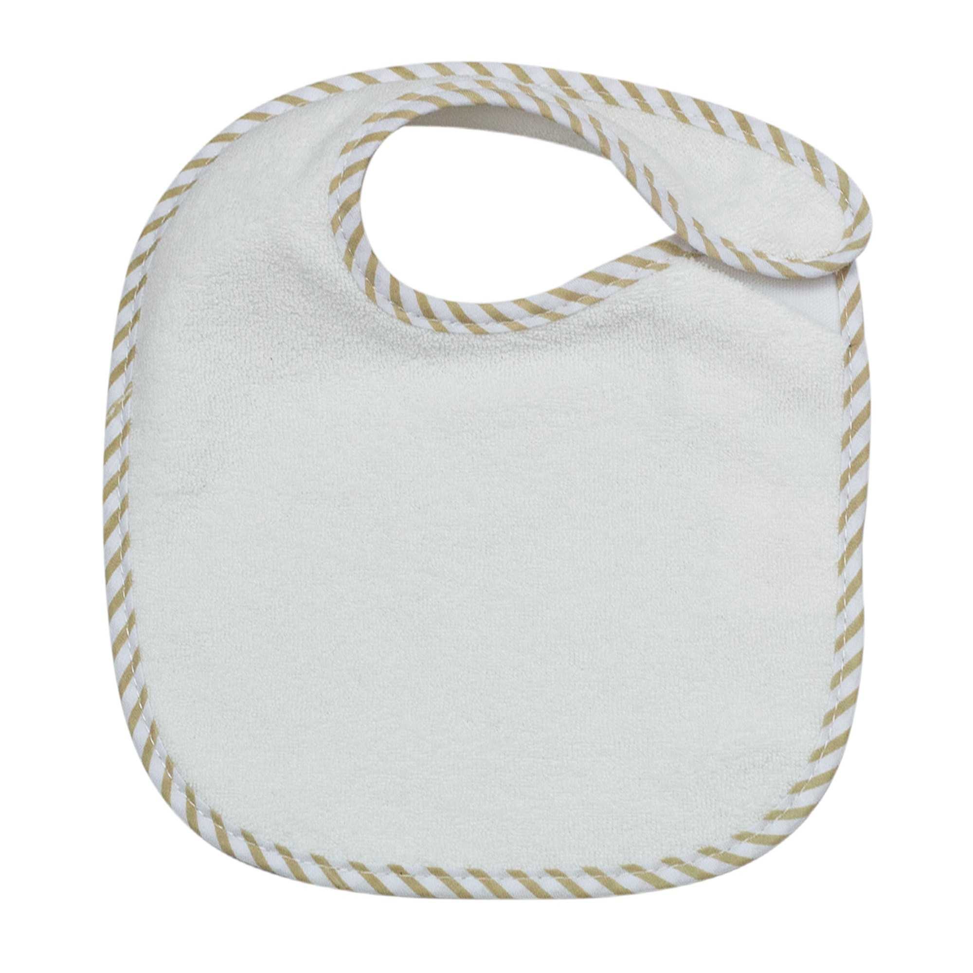 Ce lot de 7 bavoirs 0-6 mois en éponge est doublé pour une bonne absorption. Son éponge est composée de 80% coton et 20% polyester. Son liseré imprimé et son coloris uni et intemporel plaira à toute la famille.
