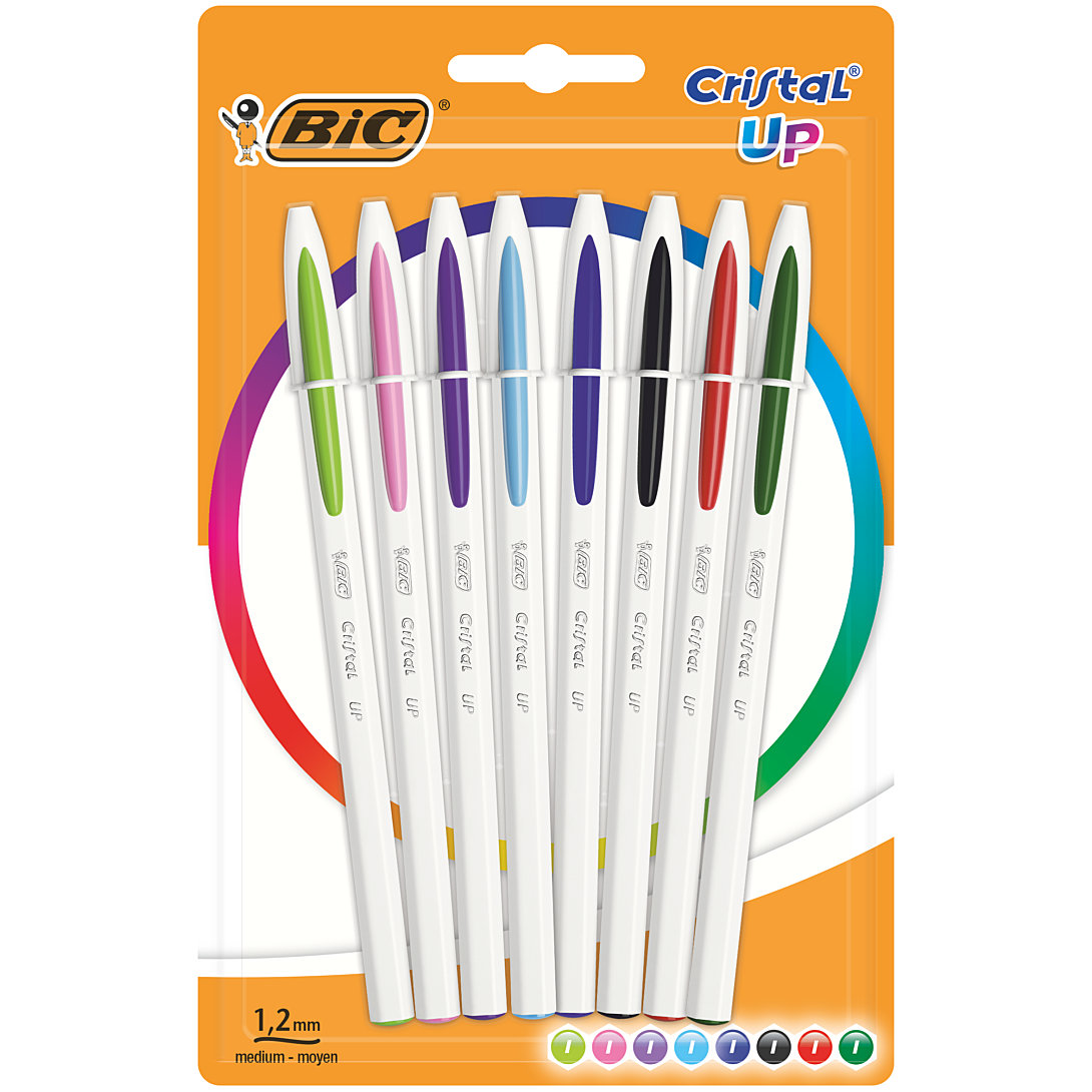 Lot de 8 BIC Cristal Up Stylos-Bille Pointe Moyenne (1,2 mm) - Couleurs Assorties