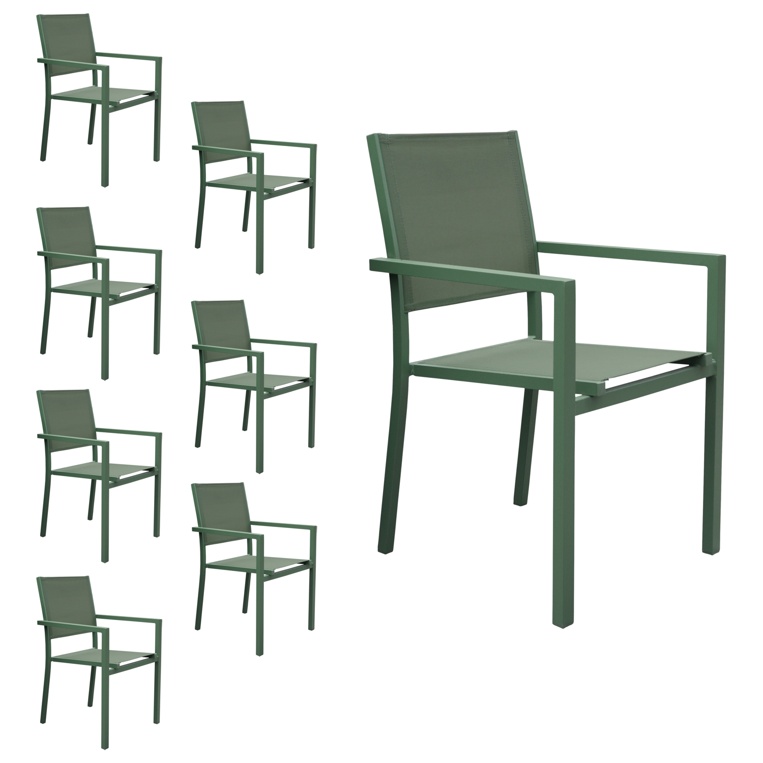 | Libellé | Lot de 8 chaises en aluminium vert sauge - textilène vert sauge |