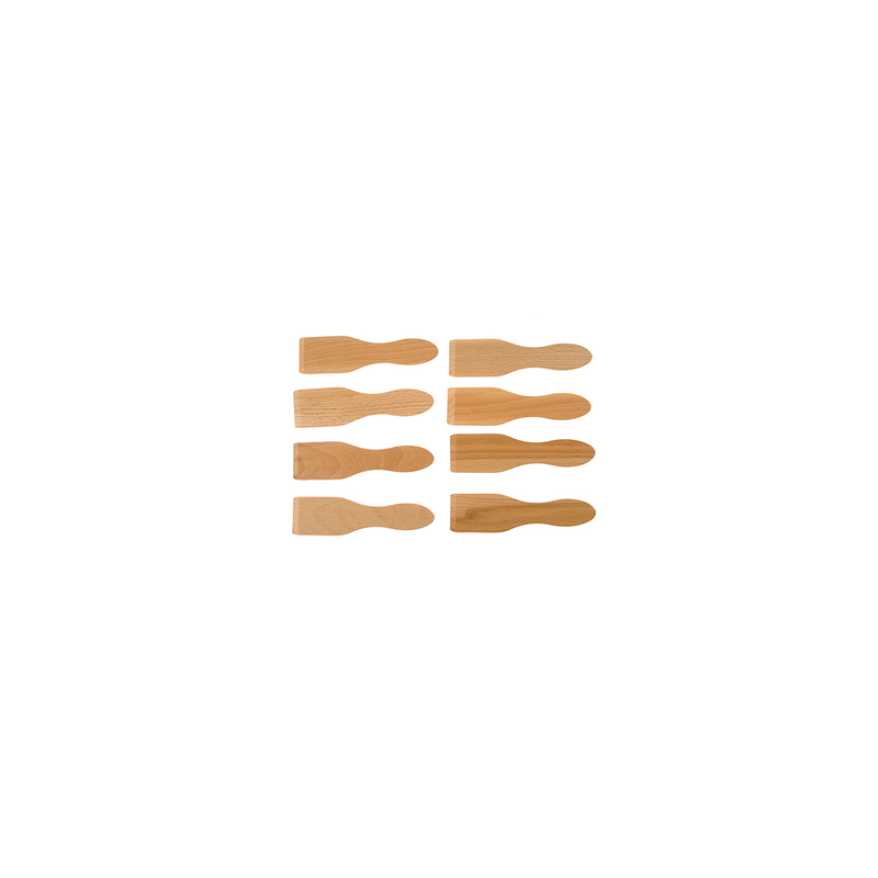 Lot de 8 spatules à raclette en bois de hêtre, finition poncée et surface lisse pour préserver les revêtements antiadhésifs.