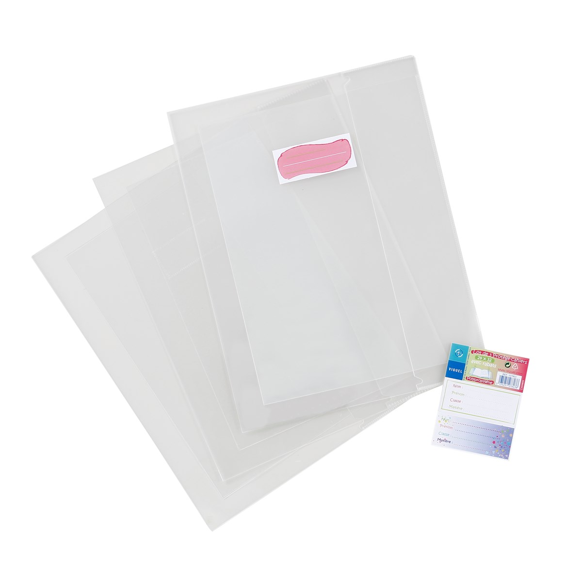 | Libellé | Lot de 9 protèges cahiers 24x32 transparents avec rabats et étiquette |