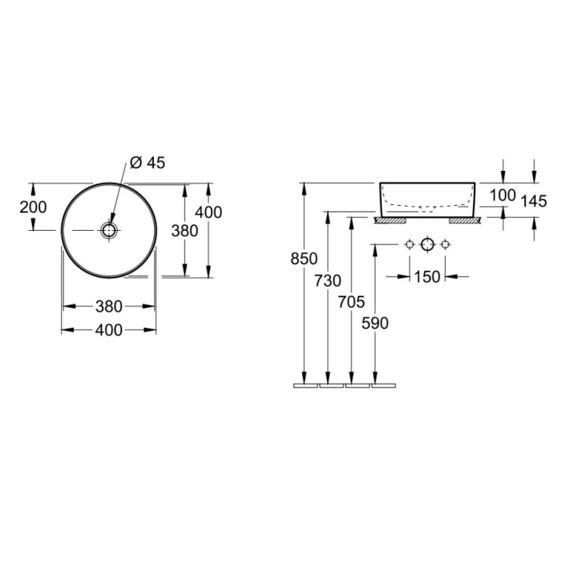 Caractéristiques de la vasque à poser Villeroy et Boch Collaro