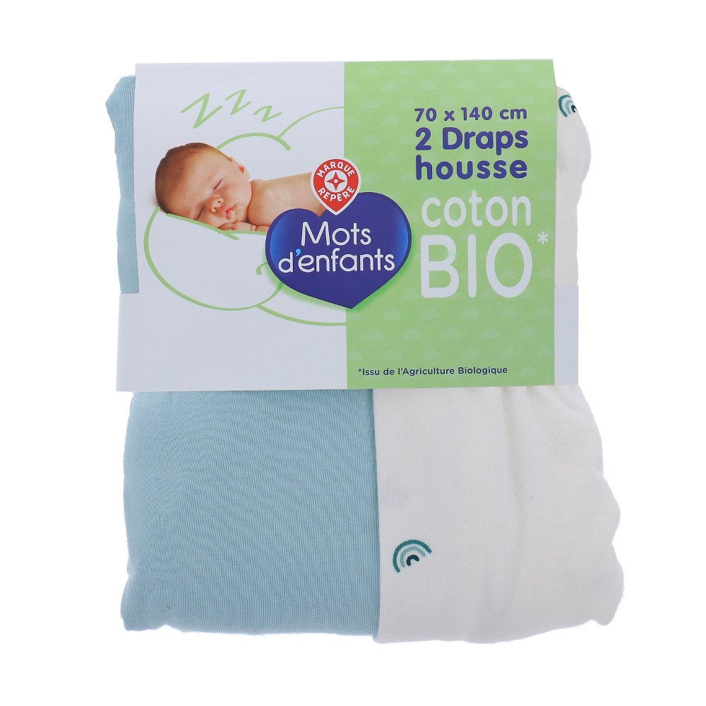 | Libellé | Lot de draps housse 70x140 Cm imprimé arc-en-ciel blanc et vert d'eau MOTS D'ENFANTS |
