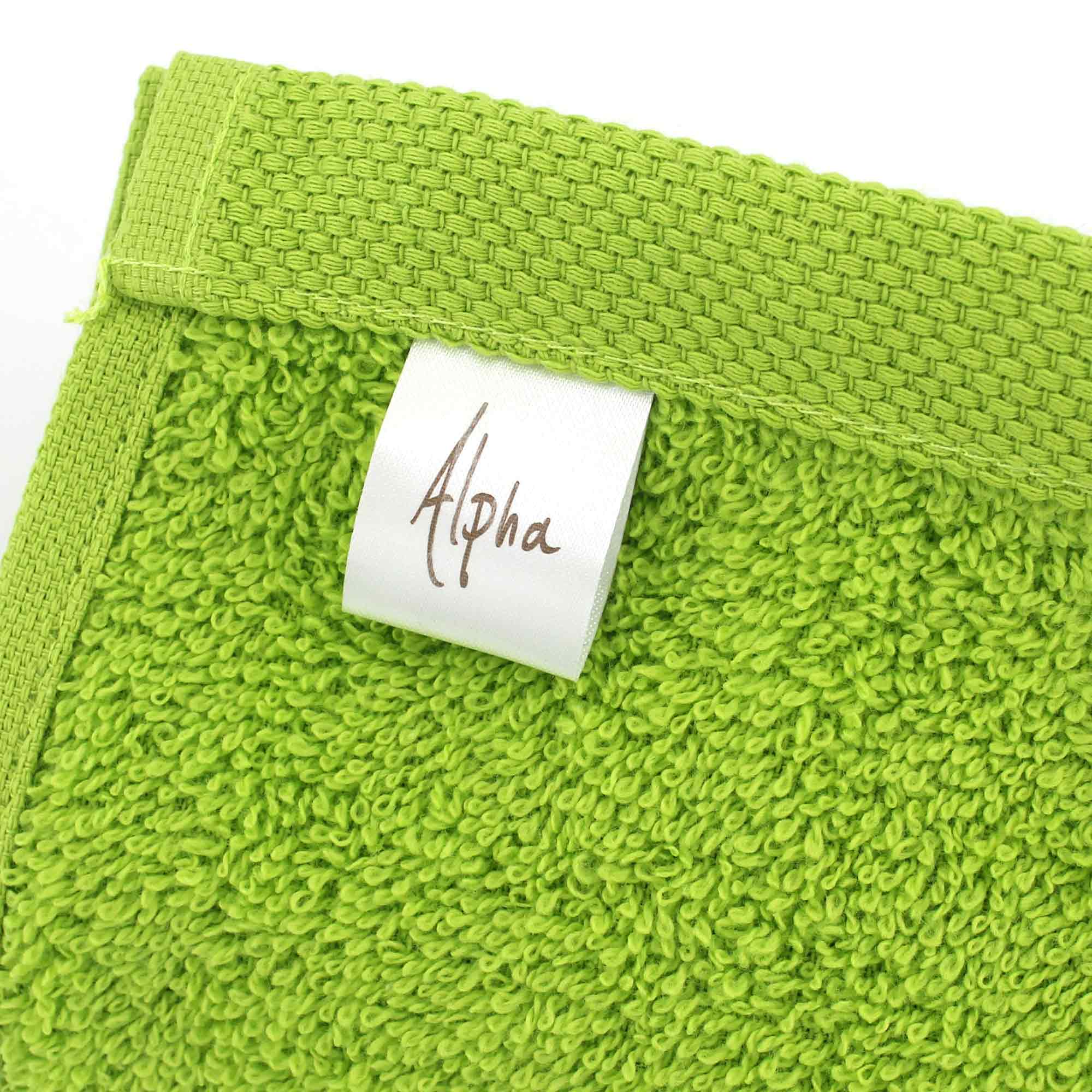 - Collection ALPHA disponible en drap de bain 90x150 cm, drap de douche 70x130 cm, serviette de toilette 50x90 cm, serviette invité 30x50 cm et 30x30 cm et gant de toilette 16x21 cm. Articles vendus par lot séparement.