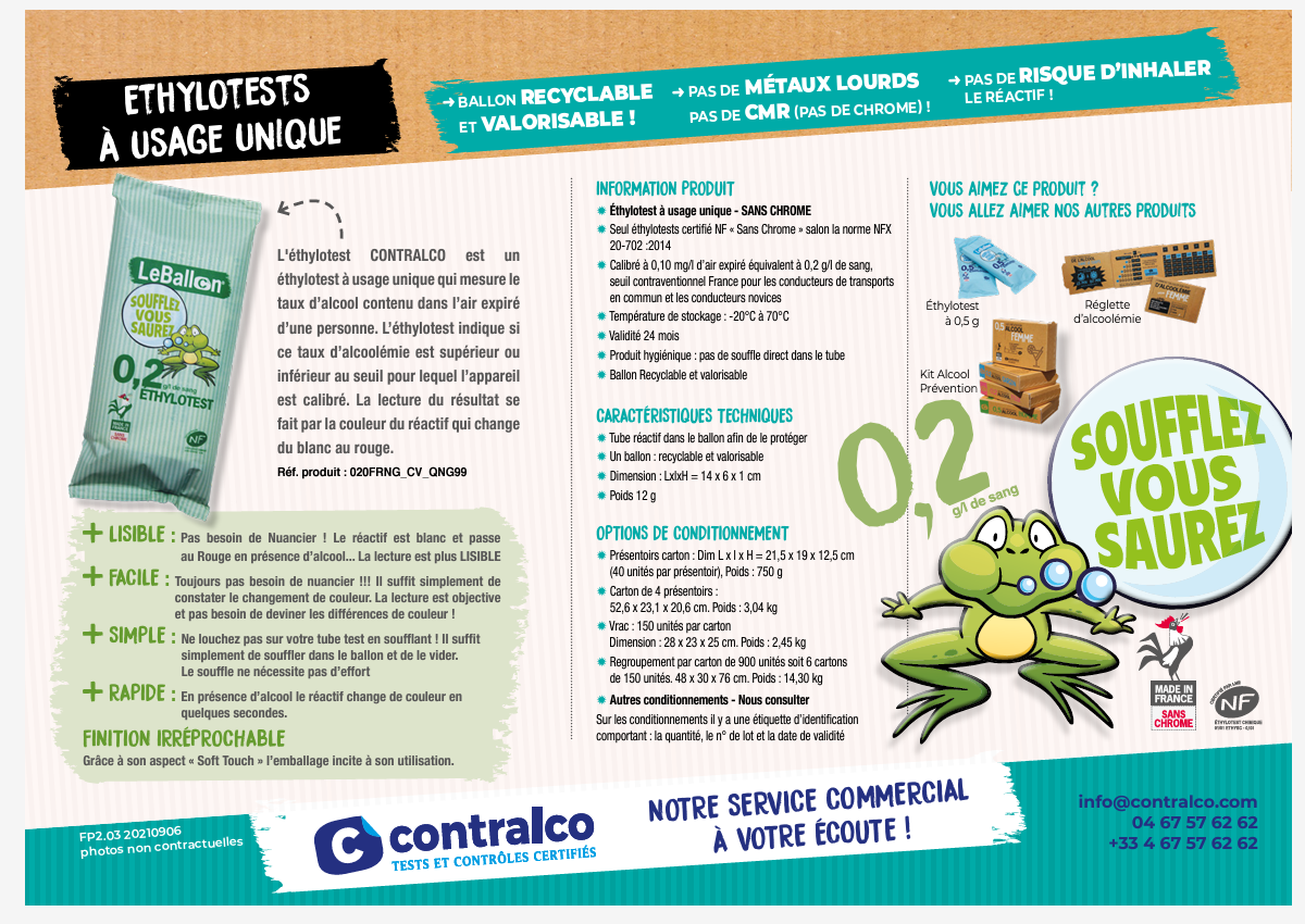 Ethylotests usage unique NF sans chrome 0,2 G/L