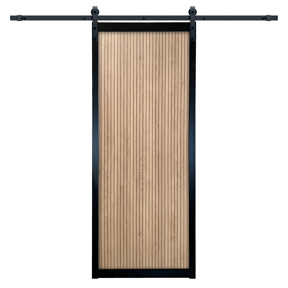 | Libellé | Lot porte Univers 204 x 83 x 4 cm, coloris noir effet métal et Deepline Wood naturel, rail rustique |