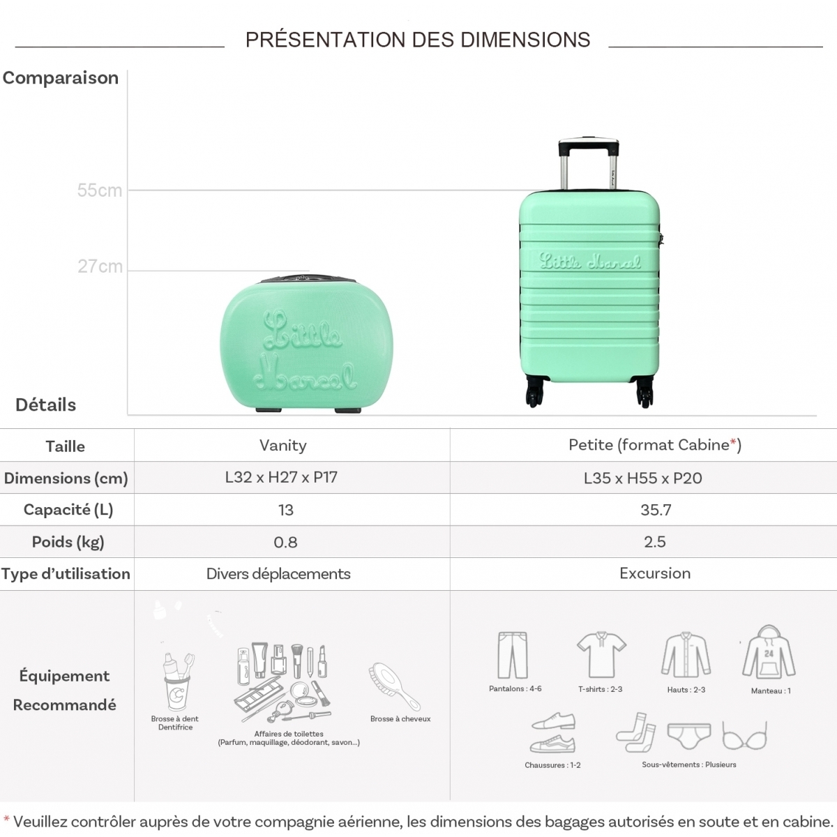 | Libellé | Lot valise cabine 55cm et vanity rigide |