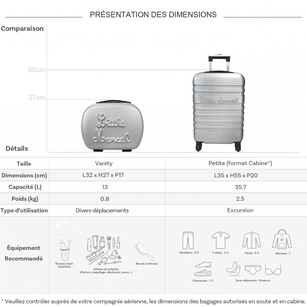 | Libellé | Lot valise cabine 55cm et vanity rigide |