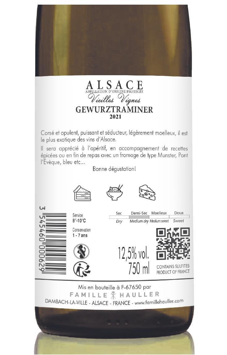 Libellé Louis Hauller Vieilles Vignes, 2022 - Alsace Gewurztraminer AOP - Blanc Moelleux - 75 cl