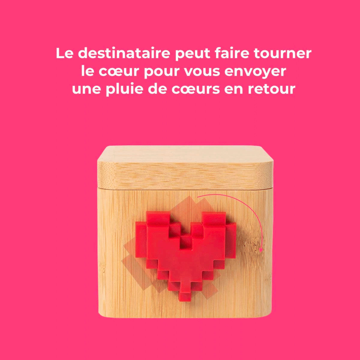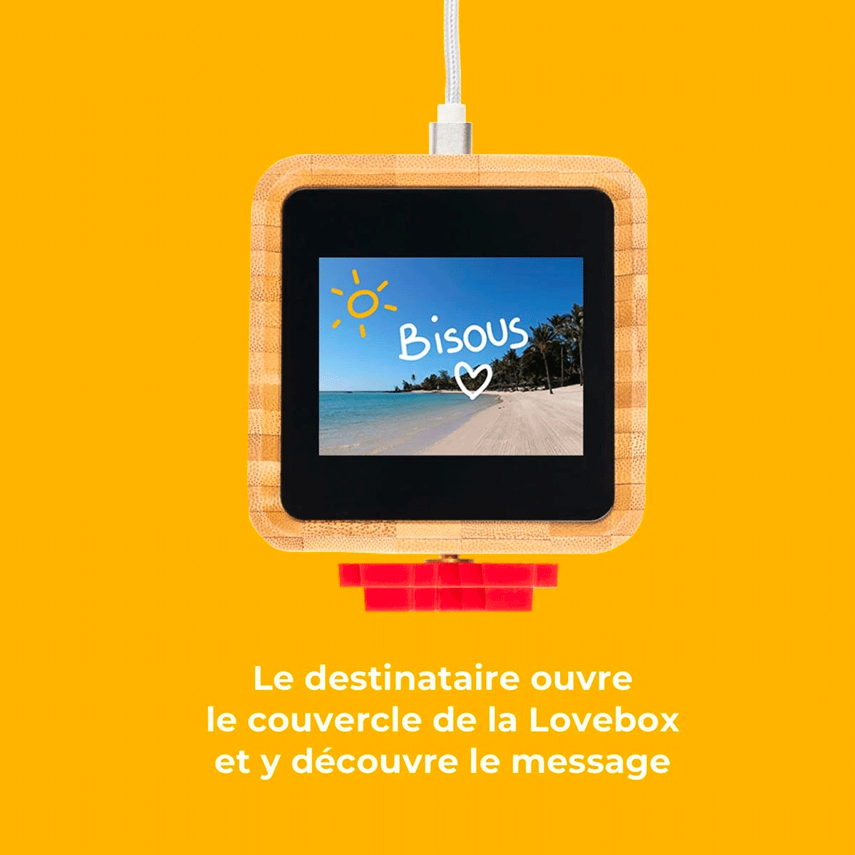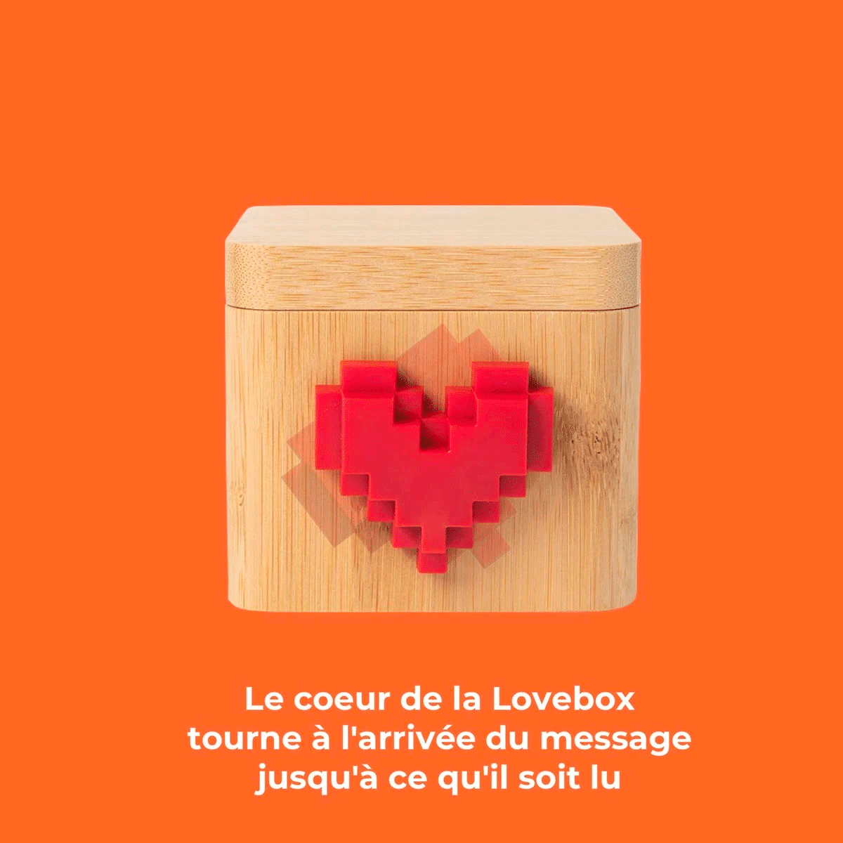 La Lovebox est une boîte à messages d'amour connectée qui vous permettra d'envoyer à vos proches des photos ainsi que des messages, des autocollants et des dessins en couleur depuis n'importe où dans le monde, grâce à l'appli Lovebox. Le spinny rouge de la Lovebox tourne à l'arrivée du message. Il ne vous reste plus qu'à ouvrir la Lovebox pour découvrir le joli mot d'amour ! Simple d'utilisation et remplie d'amour, prenez soin de vos proches de façon unique grâce à la Lovebox. Comment fonctionne la Lovebox ? - Grâce à l'application Lovebox, envoyez des photos, des dessins, des messages... - A l'arrivée du message sur la Lovebox de votre destinataire, le spinny de la Lovebox se met à tourner. Il suffit alors de soulever le couvercle de la Lovebox pour voir le message apparaître. - Le destinataire peut alors faire tourner le spinny de la Lovebox pour vous une pluie de cœurs virtuelle directement sur votre application mobile. Emotion garantie !