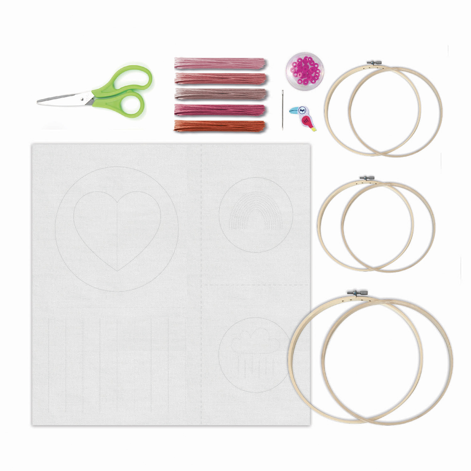 Découvre dans cette lovely box tout le nécessaire pour apprendre à broder tes premiers tableaux tendances. Ce kit contient : 1 grand cercle 20cm, 2 petits cercles 10 cm, 3 tissus coton imprimé à broder, 1 paire de ciseaux, Fils de différentes couleur, 1 tissu d'entraînement et 1 kivret pas à pas pour te guider lors de tes créations.
