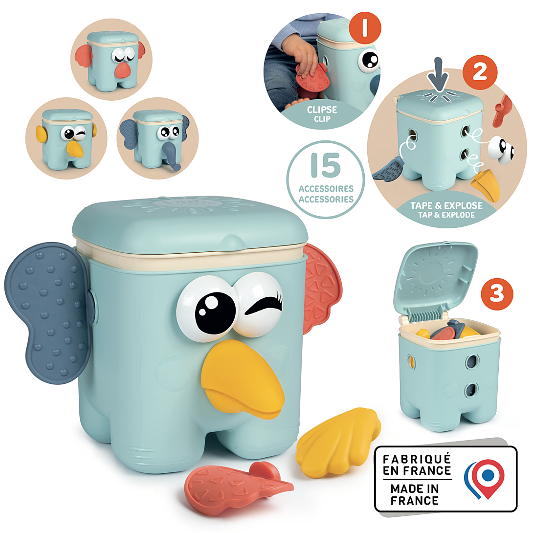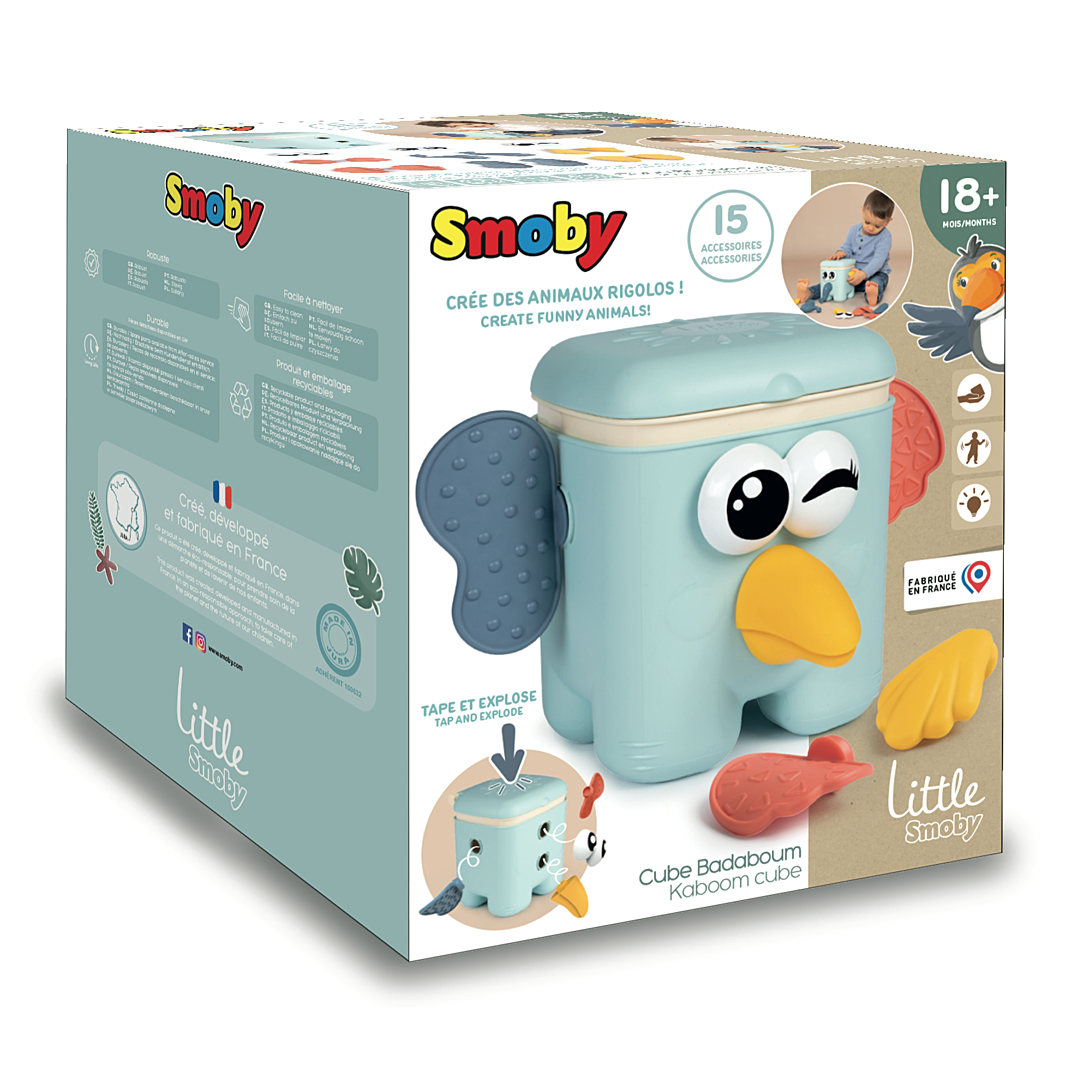 Découvrez un univers créatif et ludique avec notre jouet : le Cube Badaboum ! Ce jouet premier âge est conçu pour éveiller l'imagination des tout-petits. Avec le Cube Badaboum, les enfants peuvent construire leurs propres animaux en assemblant les différentes pièces colorées sur la base. 15 accessoires sont inclus et permettent de créer 3 animaux différents : koala, toucan et éléphant. Nez, yeux, oreilles,... Une fois l’animal assemblé, il suffit d'appuyer sur la tête pour voir tous les accessoires tomber de façon rigolote ! Les petits explorateurs seront émerveillés et recommenceront à l’infini ! Pour ranger, rien de plus simple : le socle s’ouvre pour pouvoir mettre tous les accessoires à l’intérieur. Les enfants vont pouvoir créer, explorer et laisser libre cours à leur imagination débordante. Ce jouet favorise la motricité fine, la coordination et la découverte des différentes parties du visage des animaux. Le Cube Badaboum contient un socle avec 15 accessoires différents. A partir de 18 mois. Fabrication française.