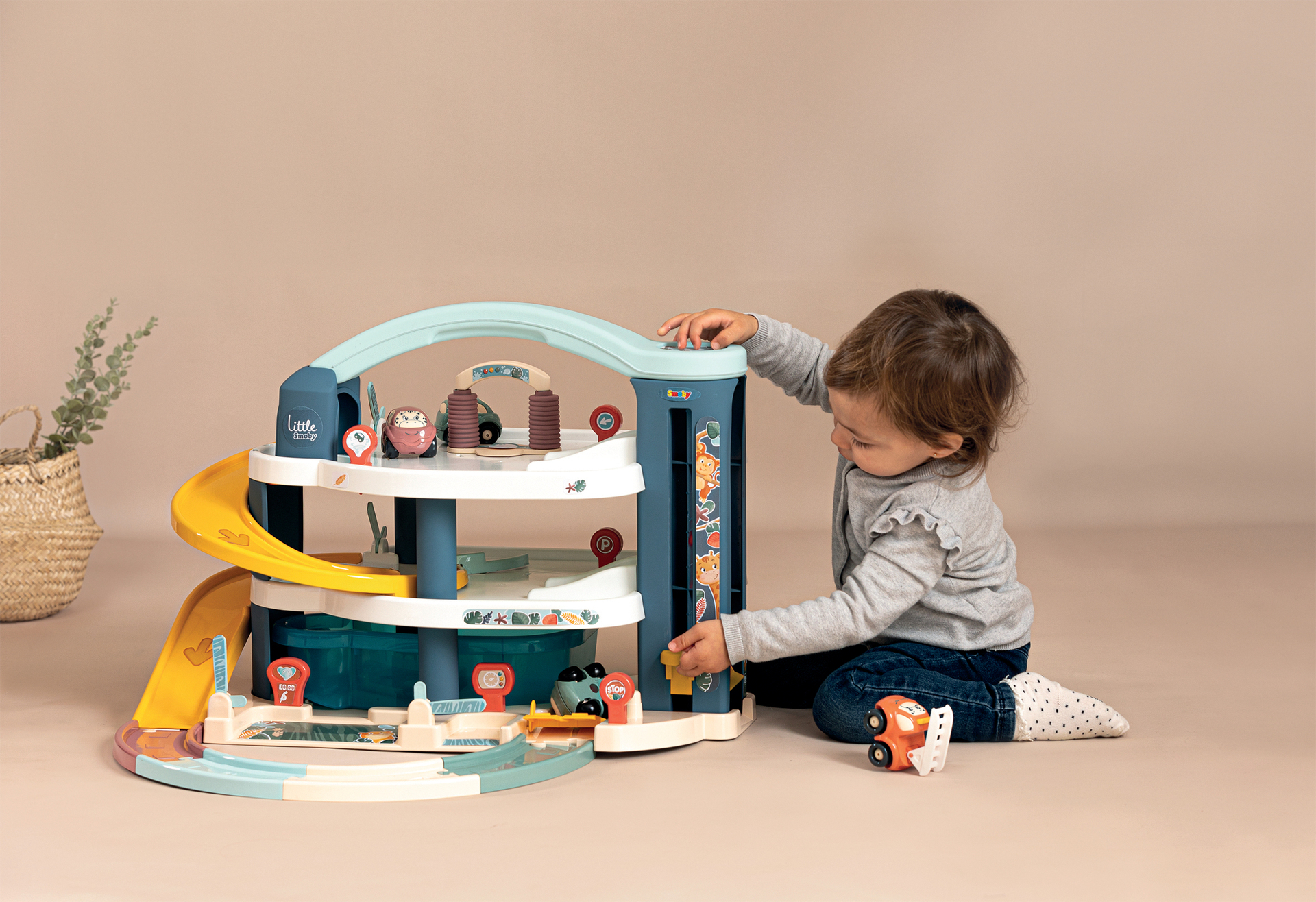 Grand garage 1er âge Little Smoby sur 3 niveaux très complet et ultra résistant conçu pour 1 ou plusieurs enfants à partir de 18 mois.