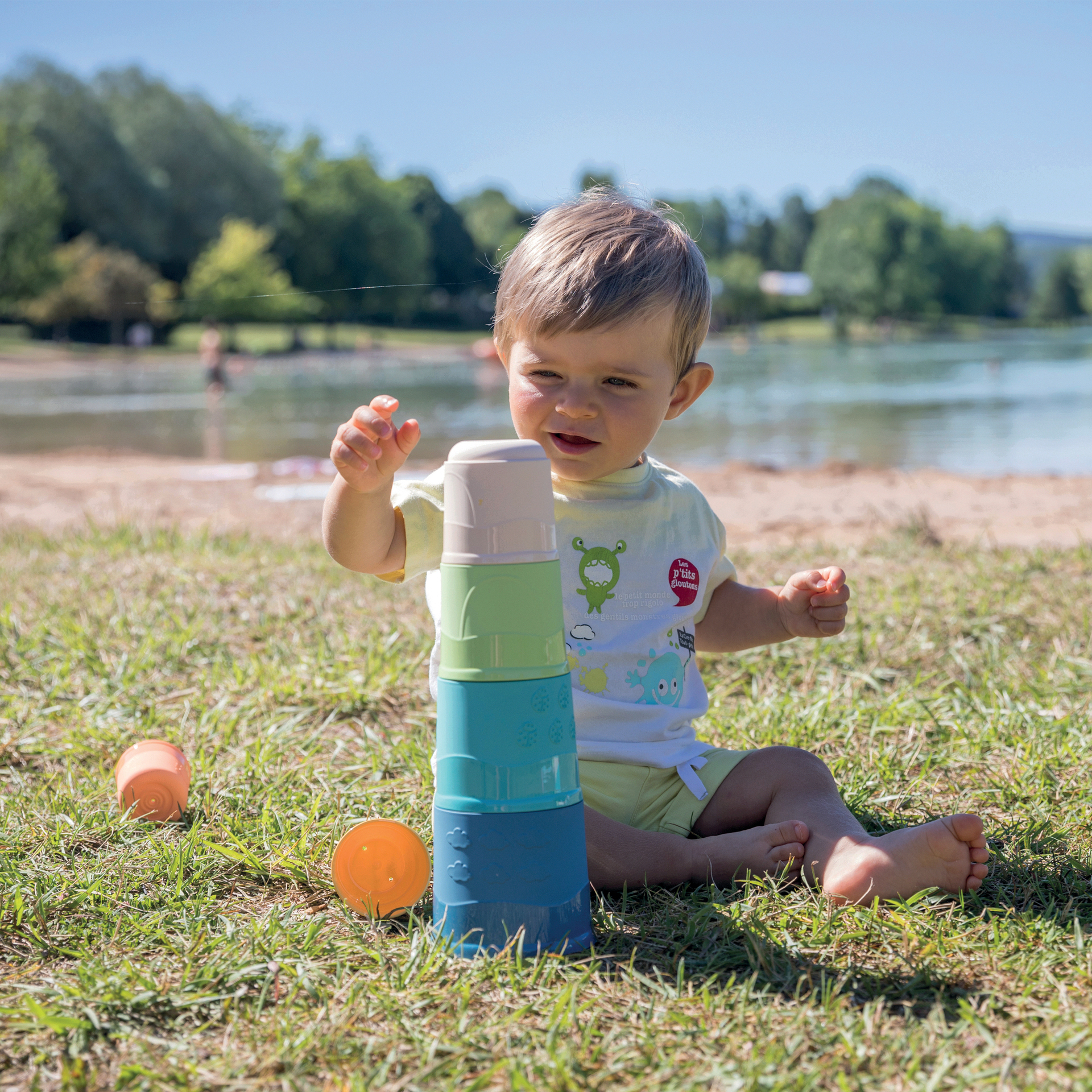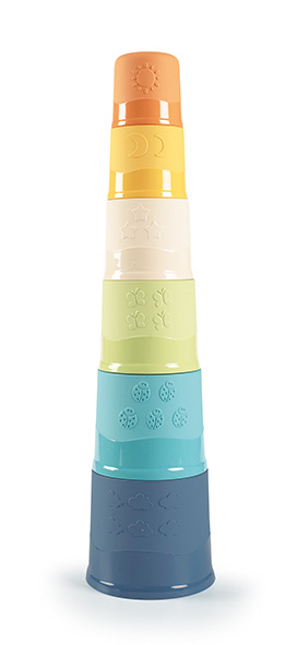 Plus produit Tour de 6 gobelets à empiler (hauteur : 40cm). Développement de la motricité et de la reconnaissance des formes. Plastique biosourcé. Produit 100% recyclable. Packaging recyclé.