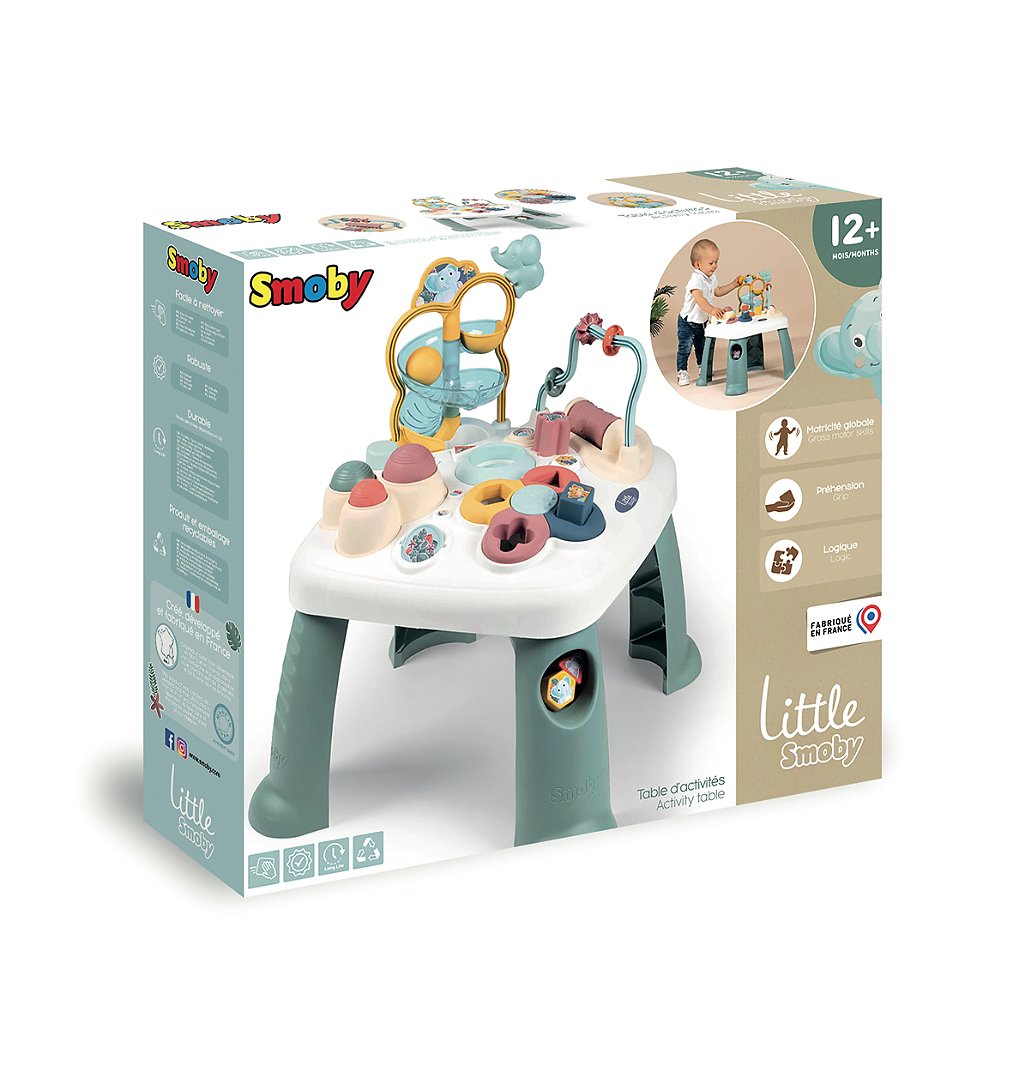 Avec la table d'activités Little Smoby votre enfant pourra s'amuser tout en développant sa motricité ! Les nombreuses fonctions mécaniques de cette table permettront à votre enfant de développer sa dextérité et l'occuperont pendant des heures. Elle possède un trieur de formes, un boulier, 3 pinets sonores, un miroir, un rouleau, un jeu de balles avec une rampe... Une catapulte est également incluse, pour faire sauter la balle ! Et hop! Avec la table Little Smoby, choisissez un produit ludique et aux couleurs tendance, qui saura s'intégrer dans votre décoration intérieure. 1 balle incluse. A partir de 12 mois - Fabrication française.
