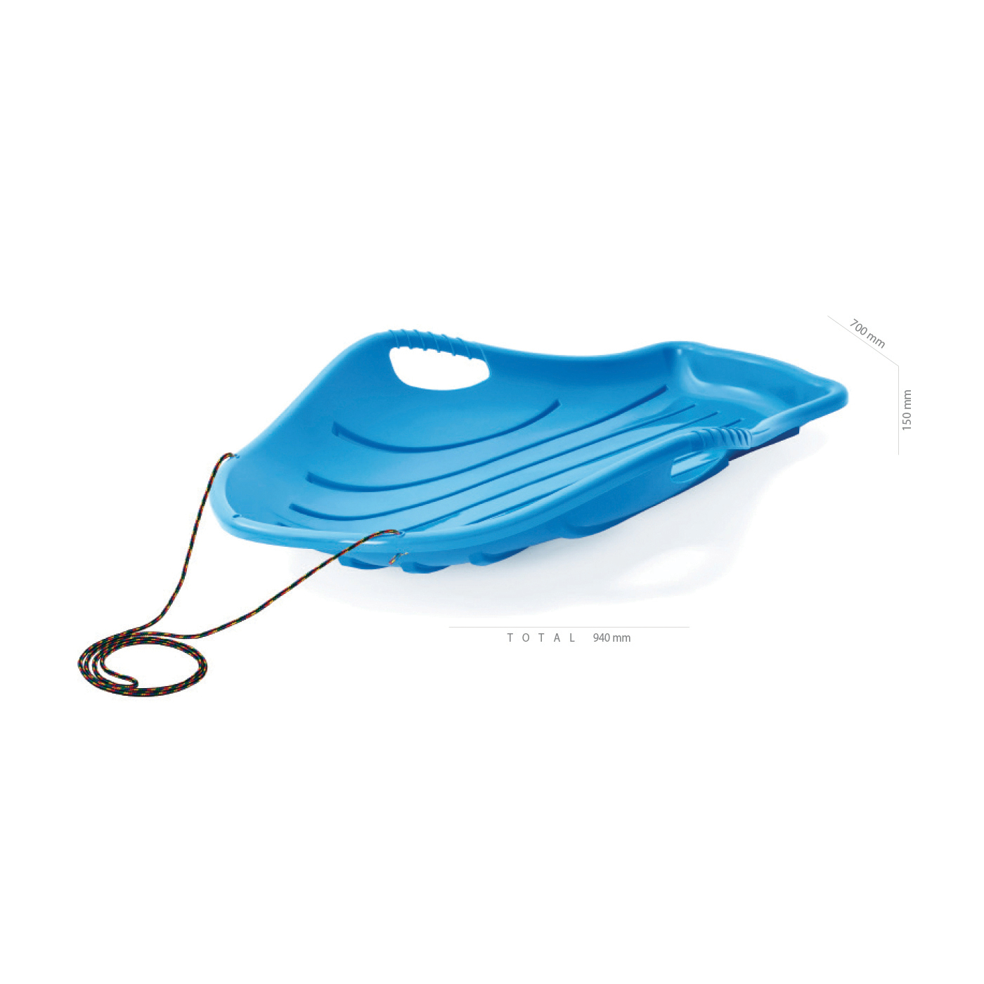 Pouvant s'emmener partout, cette luge permet de glisser en toute simplicité. Facile à transporter et à utiliser. Utilisation des pieds pour pouvoir ralentir et s'arrêter. Dimensions (Longueur x largeur x hauteur): 94cm x 70cm x 1.5cm