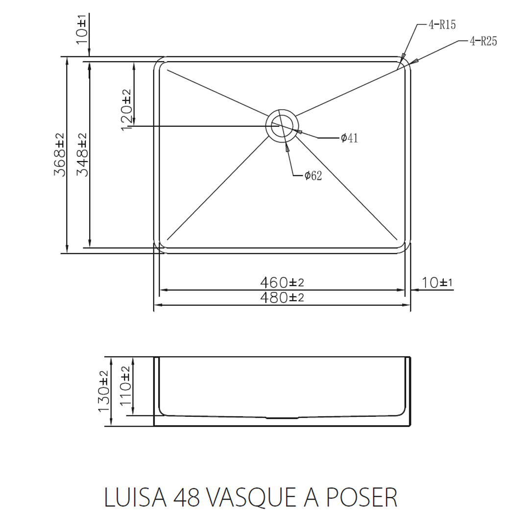 | Libellé | Luisa vasque à poser 48x37 en inox cuivre brossé |