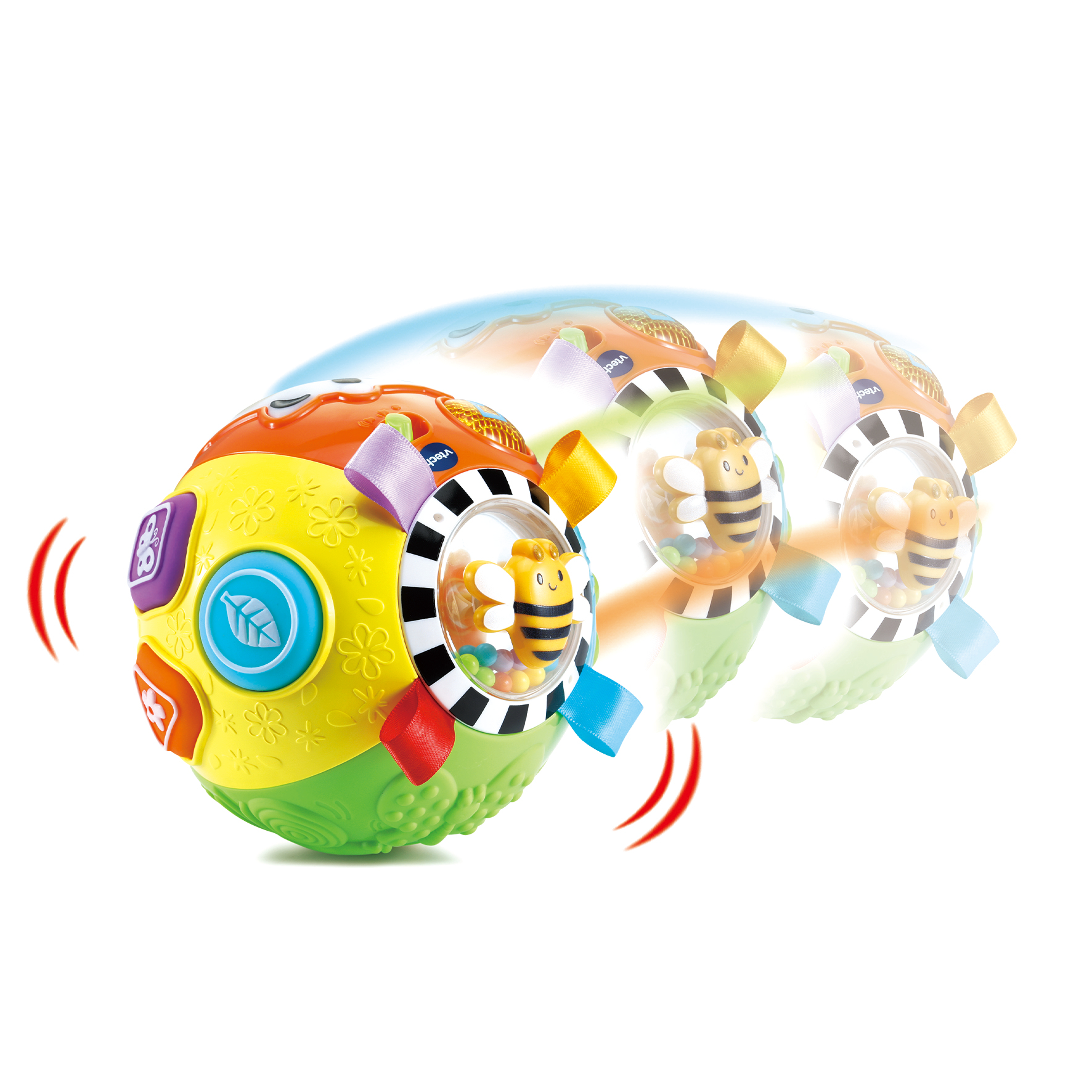 Lumi Balle des animaux - 6 - 36 mois Une balle interactive pour stimuler les sens de Bébé ! Très complète, cette jolie balle colorée éveille les sens des tout-petits grâce à ses nombreuses manipulations : - Stimulation auditive et visuelle grâce au bouton Vache lumineux et aux 3 boutons Formes en plastique souple qui déclenchent des chansons, des mélodies, des phrases et des sons amusants. - Développement du toucher grâce aux boutons Formes en plastique souple, à l’abeille à faire tourner ou encore aux différents motifs texturés. - Développement de la motricité fine grâce à la grenouille, au canard et aux rubans à manipuler. Avec détecteur de mouvement pour déclencher des effets sonores supplémentaires lorsque Bébé fait rouler la balle. 3 chansons et 15 mélodies. Arrêt automatique et réglage du volume sonore. Boîte ouverte. Fonctionne avec 2 piles LR03 fournies.