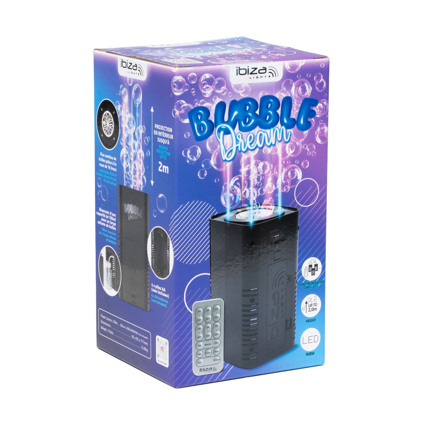 Envie d’une animation originale qui ne ressemblera à aucune autre ? Cette petite machine à bulles est faite pour vous ! Elle vous surprendra par sa production impressionnante de bulles de savon qui tourbillonnent dans l’espace, mises en lumière par 4 LED qui subliment les couleurs des bulles.