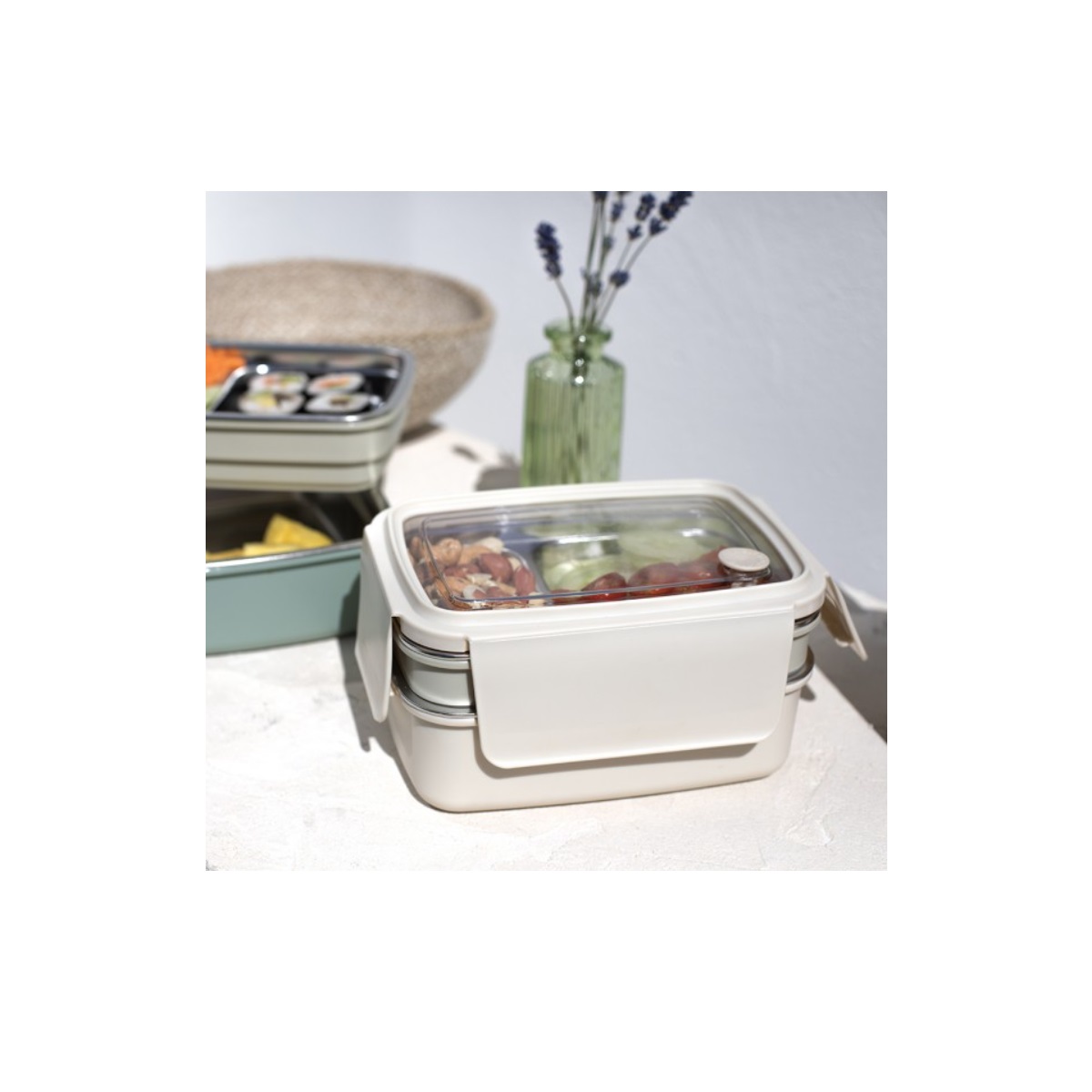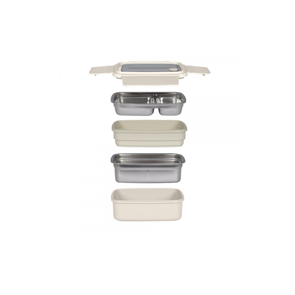 MEN406C - lunch box isotherme 1l beige - Cette Lunch box isotherme MEN406C Livoo est pratique pour séparer et emporter des repas grâce au double étage d'une capacité totale de 1000 ml (600 ml et 400 ml). Couvercle hermétique avec 4 clips de fermeture pour une meilleure conservation des aliments et des saveurs. Isotherme, permet de conserver la température des aliments chaud et froid pendant 3 heures.