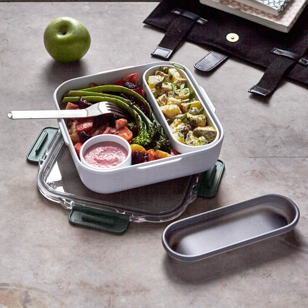 Une lunch box de 1 litre qui facilite l'organisation de votre déjeuner et présente magnifiquement votre repas. 100% étanche, comprend une fourchette en acier inoxydable, un compartiment intérieur et une casserole étanche micro-ondes (voir spécifications), passe au lave-vaisselle et congélateur. Matière : pvc sans bpa, inox Contenance : 1 litre dimensions : 20 x 20 x 5.5cm