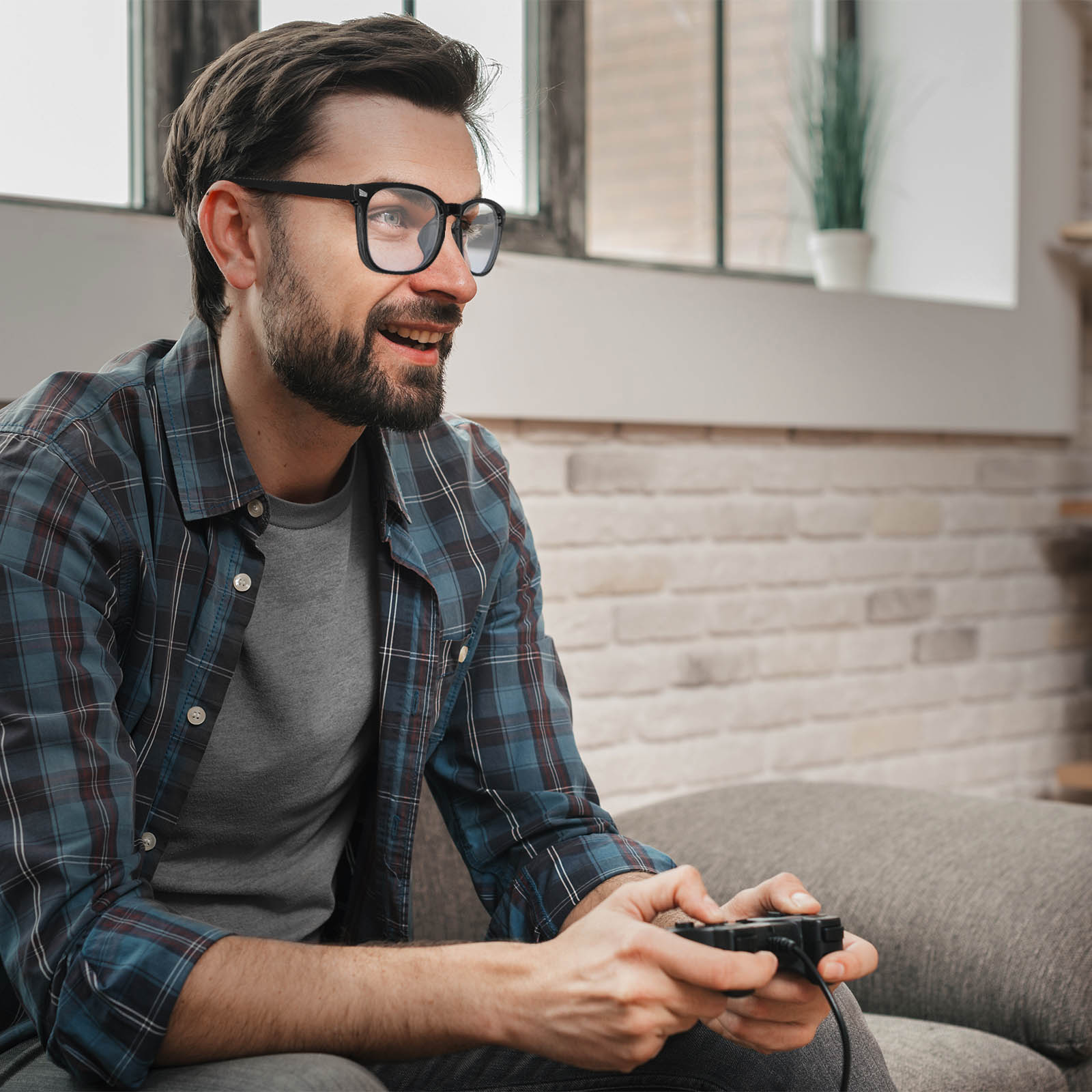 Lunettes anti-lumière bleue. Permet de bloquer jusqu'à 99% de la lumière bleue nocive émise par les écrans. Verres sans correction visuelle, dédiées à l'usage des écrans. Monture en plastique, design rectangulaire moderne. Confortable à porter (poids 18g)