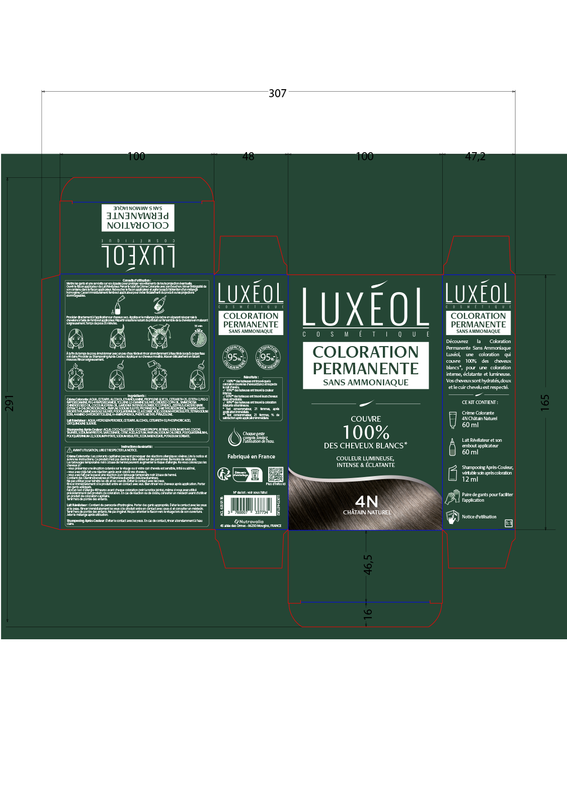 | Libellé | Luxéol Coloration Permanente Sans Ammoniaque 4N - Châtain Naturel |