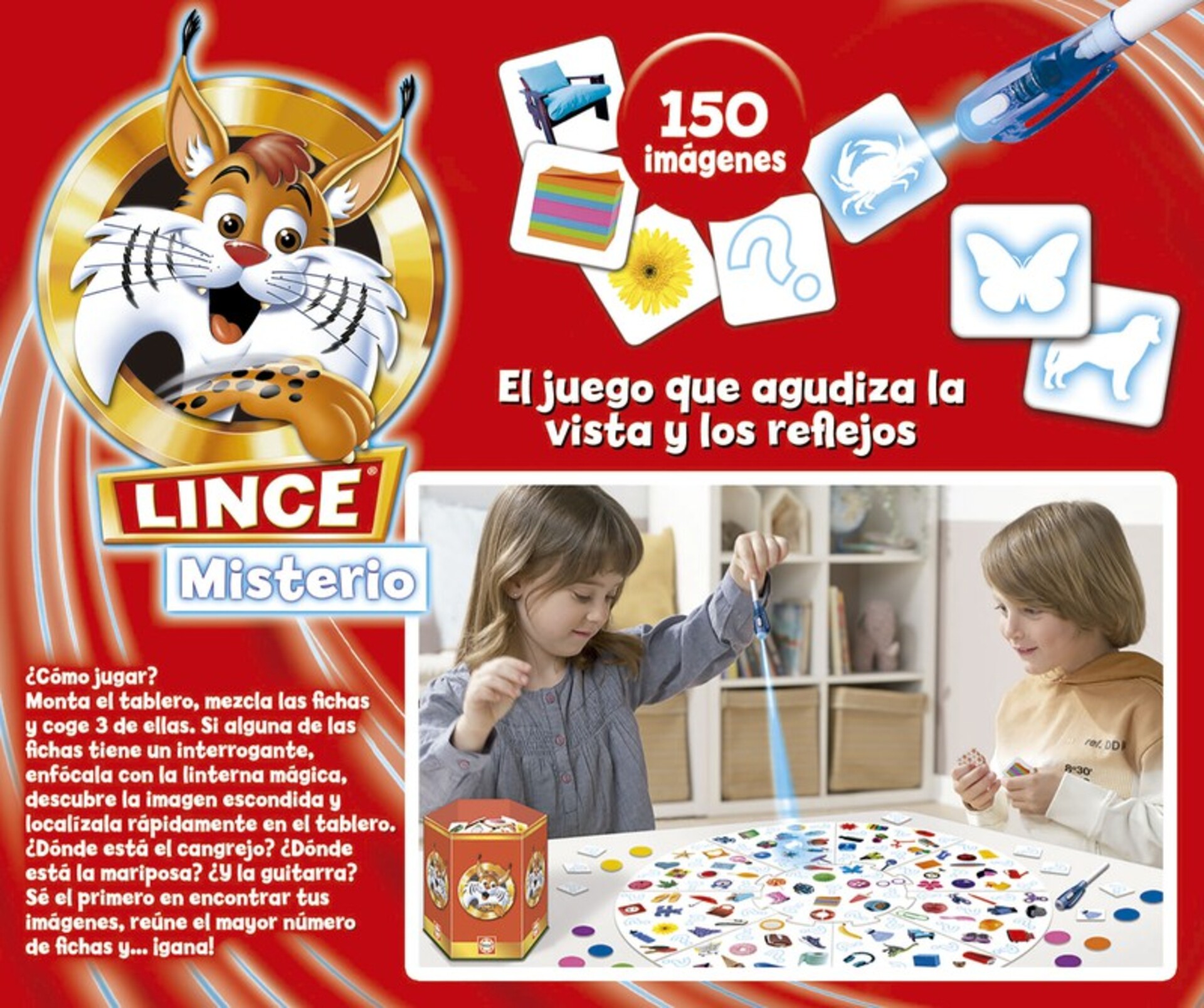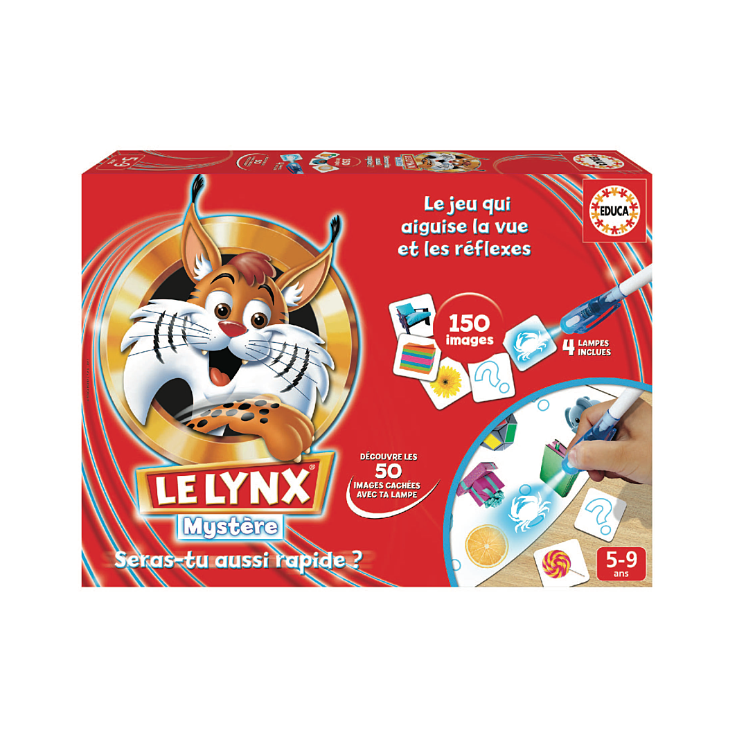 Le célèbre jeu d´acuité visuelle comprend 150 images et un nouveau défi : certaines des images du plateau sont invisibles. Soyez le premier à les repérer avec la lanterne magique, collectez le plus de jetons possible et gagnez ! Contenu : - 1 plateau composé de 9 pièces - 150 cartes d´images - 12 jetons de couleur - 1 boîte à assembler - 4 stylos-lampe - Règles du jeu.