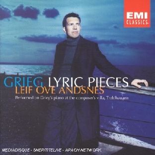 | Liste des pistes | 1.1 . op 12 (book 1) : n 1 arietta - Edvard Grieg 1.2 . op 12 (book 1) : n 2 valse - Edvard Grieg 1.3 . op 12 (book 1) : n 6 mélodie norvégienne - Edvard Grieg 1.4 . op 12 (book 1) : n 5 chant populaire - Edvard Grieg 1.5 . op 38 (book 2) : n 8 canon - Edvard Grieg 1.6 . op 38 (book 2) : n 6 élégie - Edvard Grieg 1.7 . op 38 (book 2) : n 7 valse - Edvard Grieg 1.8 . op 47 (book 4) : n 3 mélodie - Edvard Grieg 1.9 . op 54 (book 5) : n 3 marche des nains - Edvard Grieg 1.10 . op 54 (book 5) : n 4 nocturne - Edvard Grieg 1.11 . op 57 (book 6) : n 2 gade - Edvard Grieg 1.12 . op 57 (book 6) : n 3 illusion - Edvard Grieg 1.13 . op 57 (book 6) : n 6 mal du pays - Edvard Grieg 1.14 . op 62 (book 7) : n 6 vers la patrie - Edvard Grieg 1.15 . op 62 (book 7) : n 4 le ruisseau - Edvard Grieg 1.16 . op 62 (book 7) : n 5 vision - Edvard Grieg 1.17 . op 62 (book 7) : n 1 sylphide - Edvard Grieg 1.18 . op 68 (book 9) : n au berceau - Edvard Grieg 1.19 . op 65 (book 8) : n 6 jour de noces à troldhaugen - Edvard Grieg 1.20 . op 68 (book 9) : n 4 soir dans les montagnes - Edvard Grieg 1.21 . op 68 (book 9) : n 3 a tes pieds - Edvard Grieg 1.22 . op 71 (book 10) : n 2 soir d'été - Edvard Grieg 1.23 . op 71 (book 10) : n 6 passé - Edvard Grieg 1.24 . op 71 (book 10) : n 7 souvenirs - Edvard Grieg |