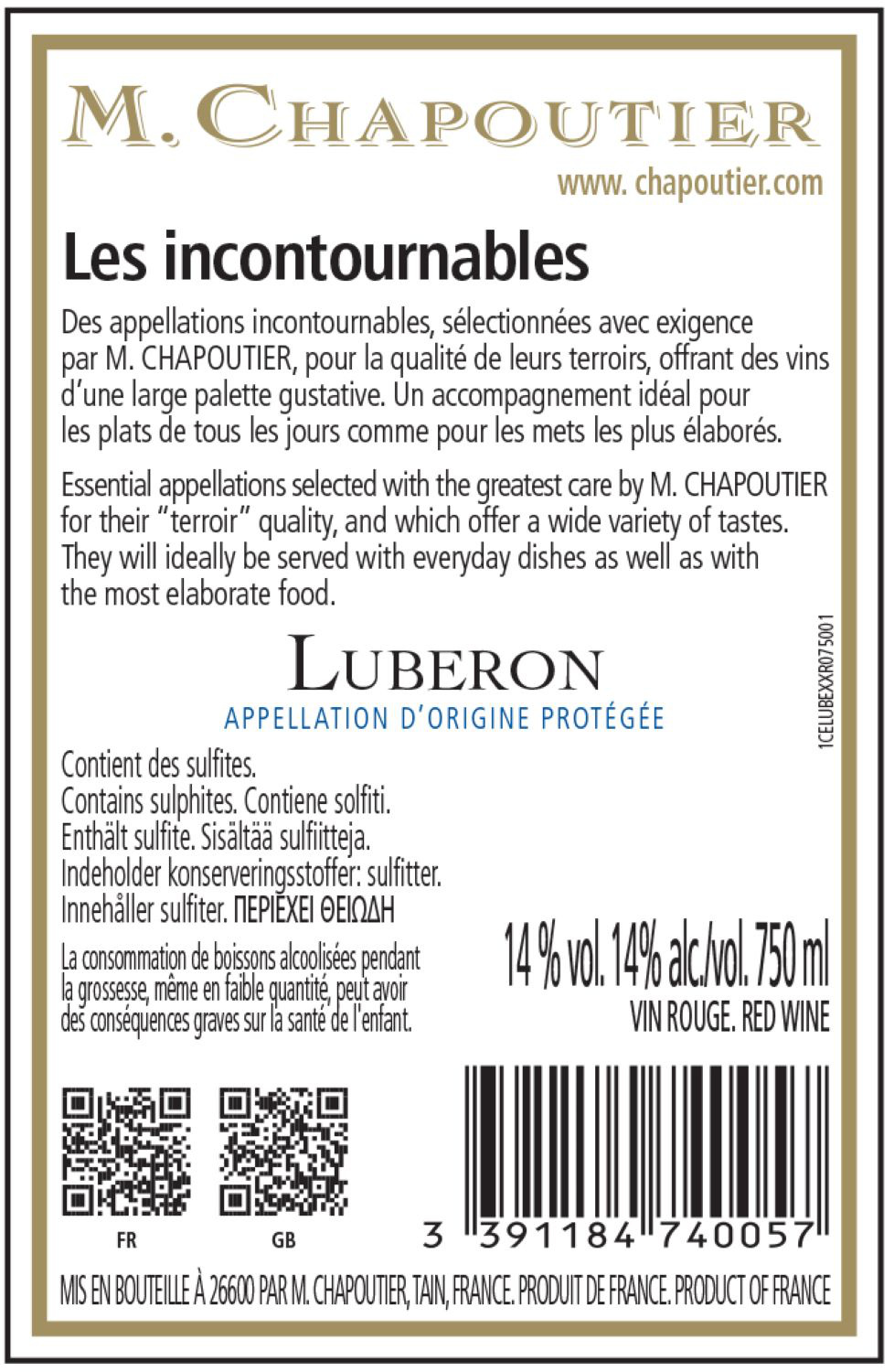 | Libellé | M. Chapoutier, 2023 - Luberon AOP - Rouge - 75 cl |