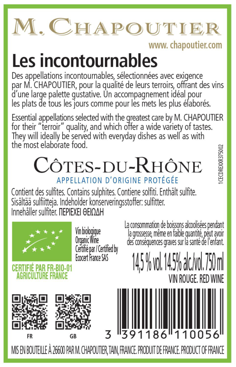 | Libellé | M. Chapoutier BIO, 2024 - Côtes du Rhône AOP - Rouge - 75 cl |