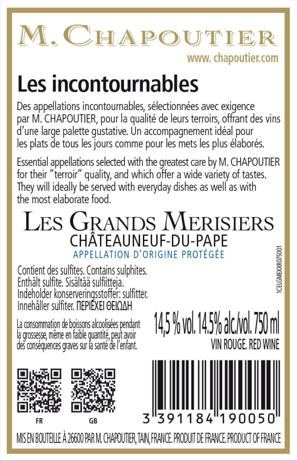 | Libellé | M. Chapoutier - Les Grands Merisiers, 2020 - Châteauneuf-du-Pape AOP - Rouge - 75 cl |