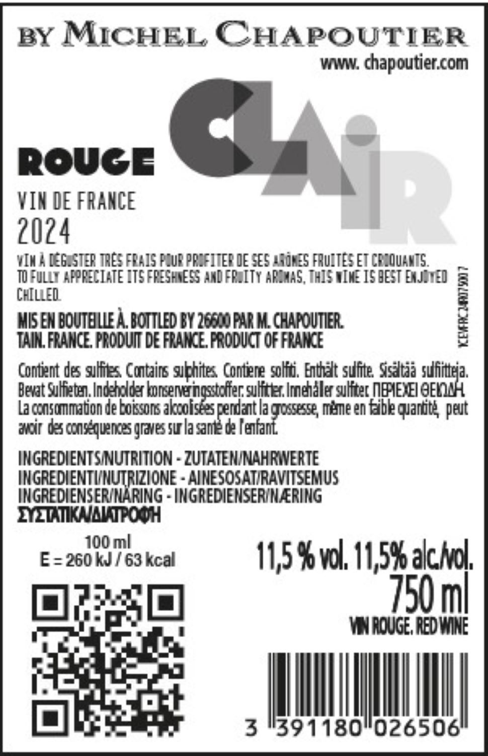 | Libellé | M. Chapoutier "Rouge Clair" 2024 - Vin de France - Rouge - 75 cl |