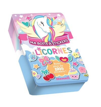 Une jolie boîte métallique contenant 1000 stickers sur le thème de licornes. À coller sur les cadeaux, un cahier, des dessins, des cartes, des bricolages... et partout ailleurs, selon ses envies !