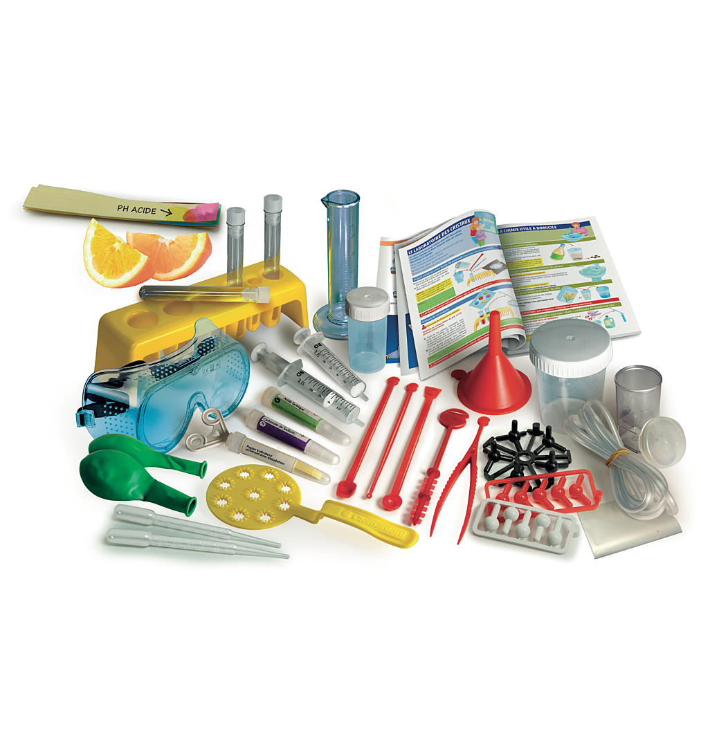 | La boîte contient | Contient 1 paire de lunettes de protection + 2 verres équipés de couvercles + des tubes à essais équipés de bouchons + 1 goupillon + 1 agitateur + 2 pipettes + des modèles d’atomes + 2 ballons + 1 clé de sécurité pour les tubes à essais + 2 seringues + 1 éprouvette graduée + 1 entonnoir + 1 porte-tubes à essais + 2 spatules + 1 papier filtre + 1 tube en plastique + 1 pincette + 1 instrument pour faire des bulles + des substances chimiques (acide tartrique, carbonate de sodium, papier indicateur universel avec exsudation) + 1 manuel illustré |