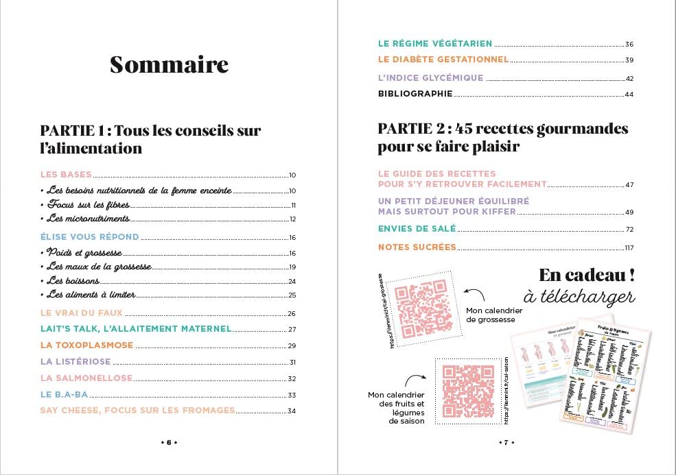 Ma grossesse sereine et gourmande est plus qu'un livre de recettes pour femmes enceintes : il offre des informations et recommandations sur l’alimentation pendant la grossesse et les réponses aux questions les plus fréquemment posées :